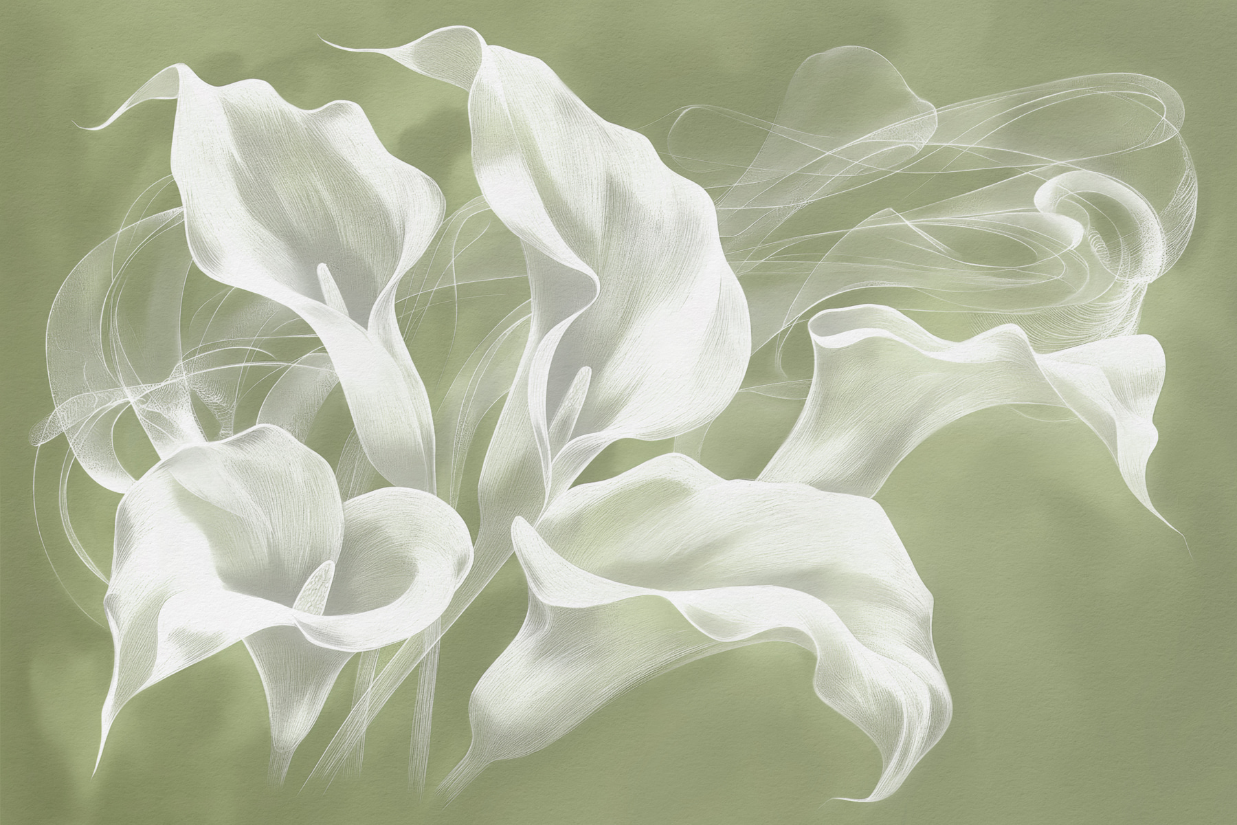 Wyobraź sobie, że wchodzisz do przestrzeni, w której czujesz się jak w spokojnym ogrodzie, a wszystko to bez brudu i pyłków. Ta fototapeta przedstawia delikatne białe lilie calla tańczące na miękkim zielonym tle, wprowadzając świeży, przewiewny nastrój. To jak powiew świeżego wiosennego powietrza, bez alergii.