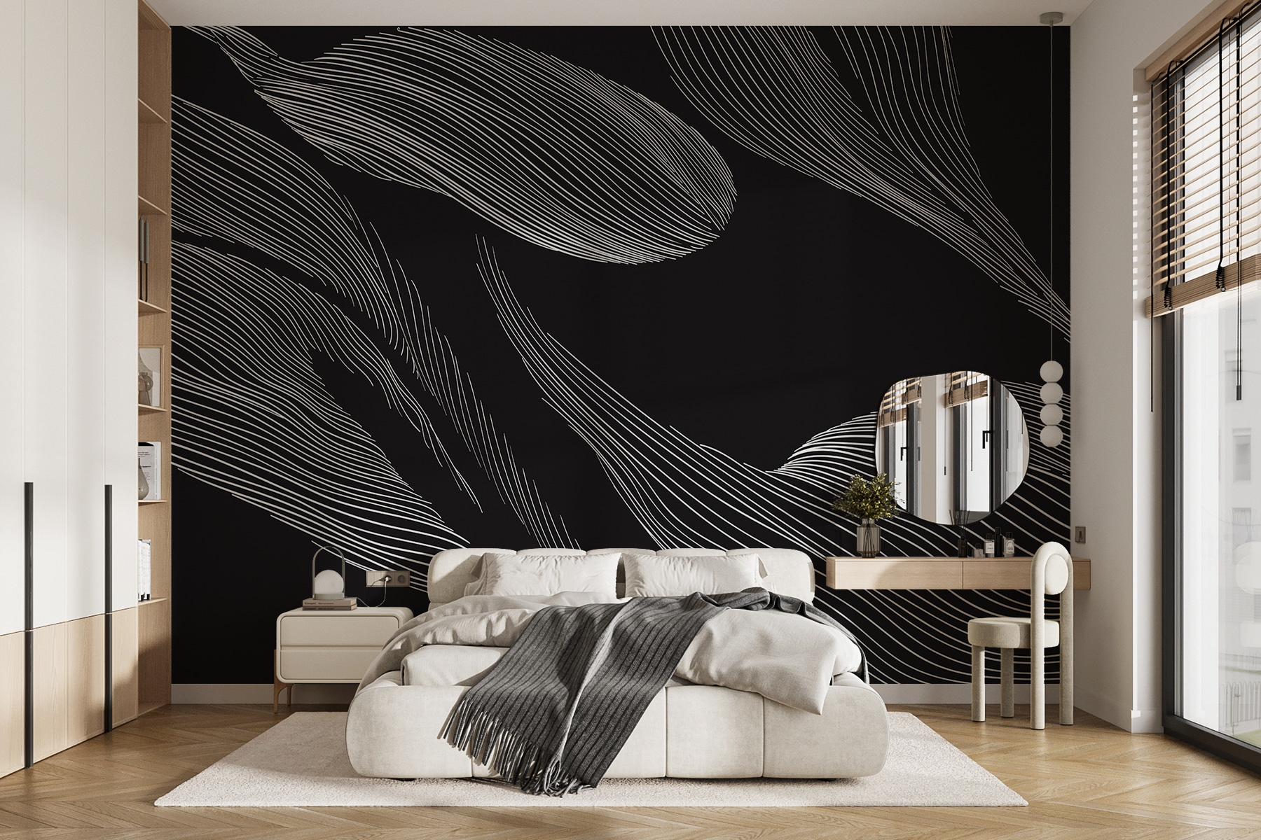 Odmień swoją przestrzeń dzięki tej oszałamiającej czarno-białej fototapecie z liśćmi, które tańczą po ścianie. To jak przeniesienie natury do wnętrza, bez owadów – punkty bonusowe! Płynne linie dają poczucie ruchu, przypominając delikatną bryzę szeleszczącą liśćmi. Idealny do przytulnego kącika do czytania lub nowoczesnego salonu, z pewnością pobudzi do rozmów, a może nawet do marzeń. Wyobraź sobie, że zwijasz się z filiżanką herbaty, otoczony kojącymi wibracjami tego dzieła sztuki. Kto by pomyślał, że fototapeta może zmienić ścianę w cały nastrój?