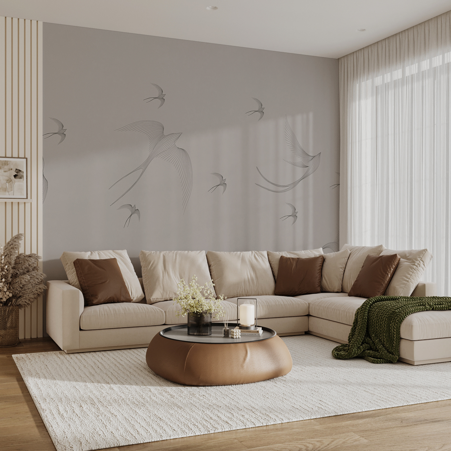 Przekształć nudną ścianę w zapierające dech w piersiach niebo dzięki fototapecie ściennej “Grupa lecących ptaków”. Ta fototapeta przedstawia pełen wdzięku taniec ptaków szybujących w powietrzu, wprowadzając lekką, przewiewną atmosferę do każdego pomieszczenia. Wyobraź sobie, że popijasz poranną kawę, spoglądając na te eleganckie stworzenia, które zdają się przelatywać tuż obok. Delikatne kolory przywołują spokój i ukojenie – idealne do przytulnego kącika do czytania lub podnoszącej na duchu przestrzeni biurowej. To jak posiadanie kawałka natury we wnętrzu, przypominającego wszystkim, że zawsze jest miejsce na wolność i lot, nawet w najbardziej zabieganym życiu. Pozwól swoim ścianom wzbić się w powietrze!