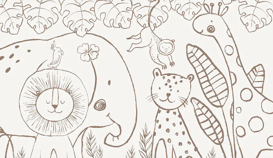Wyobraź to sobie: twarz dziecka rozjaśnia się każdego ranka, gdy budzi się na widok swoich kapryśnych, ręcznie rysowanych przyjaciół na ścianie. Kojące odcienie ziemi mieszają się z zabawnymi liniami, które przynoszą poczucie przygody i spokoju. I szczerze mówiąc, kto nie chciałby zobaczyć szczęśliwego lwa z ptakiem na głowie? To początek rozmowy, zachęta do opowiadania historii i dzieło sztuki w jednym.