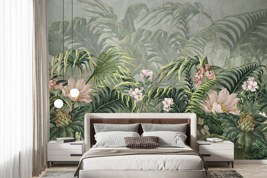 Wyobraź sobie, że wchodzisz do pokoju i czujesz się, jakbyś został przeniesiony prosto do bujnej, czarującej dżungli – całkiem fajnie, prawda? O to właśnie chodzi w “Fototapeta w01309”. Dzięki żywym, szczegółowym liściom palmowym i tropikalnym kwiatom, ta fototapeta wprowadza uspokajające wibracje natury do wnętrza. Wyobraź ją sobie w swoim salonie – natychmiast przekształca twoją przestrzeń w egzotyczny azyl. Nagle poranna kawa poczuje się tak, jakbyś popijał ją w tropikalnym raju, przy śpiewie ptaków! To idealne rozwiązanie dla każdego, kto pragnie odrobiny ciepła i zieleni bez konieczności konserwacji. Niezależnie od tego, czy chodzi o różowe kwiaty, czy głęboką zieleń liści, ta grafika tchnie świeżość i spokój w każde otoczenie. To jak własne dzieło sztuki natury – bezpośrednio na ścianie!