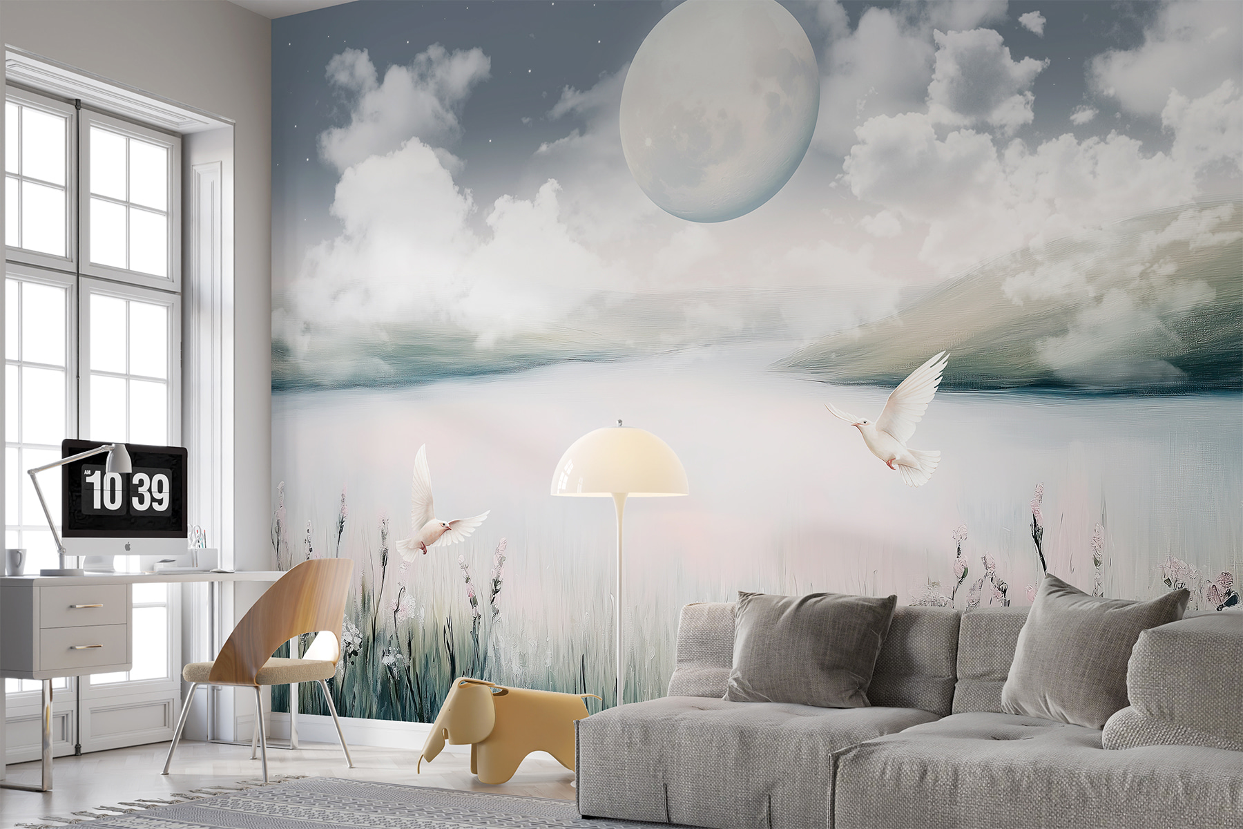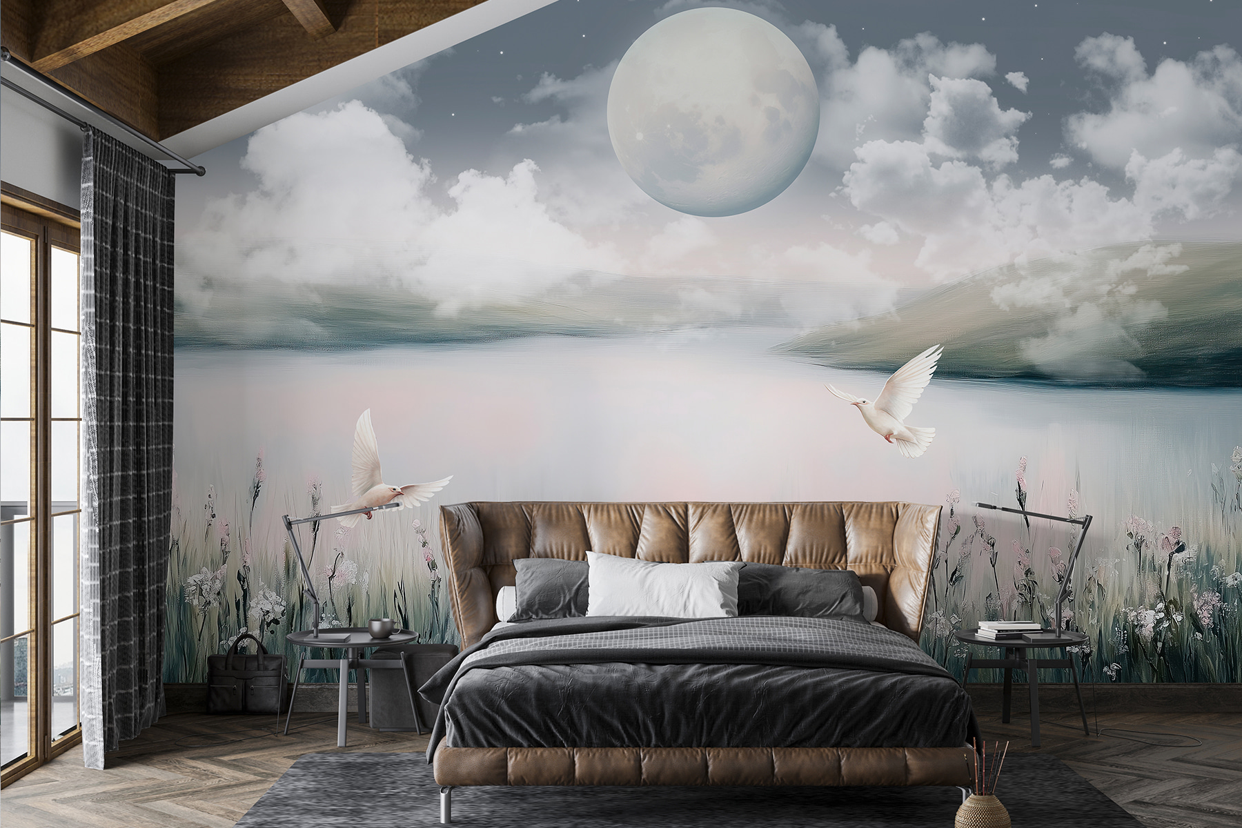 Wyobraź sobie, że relaksujesz się na kanapie z filiżanką herbaty w dłoni i czujesz się, jakbyś unosił się w tym spokojnym krajobrazie. Poranki są spokojne, a wieczory magiczne. To idealne rozwiązanie dla każdego, kto kocha naturę i pragnie odrobiny kaprysu. Bonus? Te pastelowe kwiaty i ptaki dodają odpowiedniego uroku, ale nie są zbyt przesadzone. Zdecydowanie początek rozmowy podczas następnego rodzinnego obiadu! 🌙✨