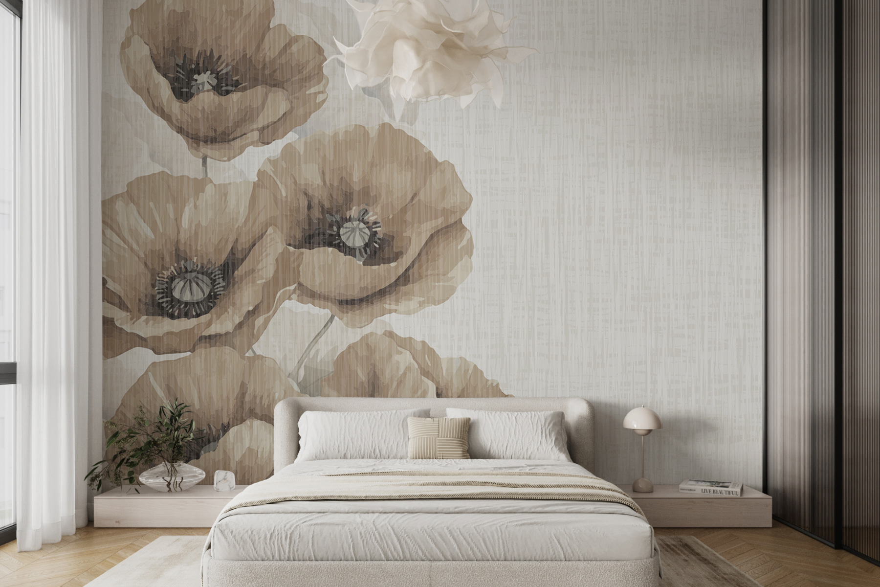 Wyobraź sobie, że wchodzisz do przytulnego, oświetlonego słońcem pokoju, w którym ściany rozkwitają miękkimi, delikatnymi kwiatami. Ta fototapeta, z jej stonowanymi odcieniami, szepcze spokój i ciepło, jak delikatny uścisk w leniwy niedzielny poranek. Wyobraź sobie przyjaciela wylegującego się z filiżanką herbaty, pozwalającego oczom wędrować po spokojnych kwiatach, czując, jak stres dnia znika. To nie tylko dekoracja; to poprawiacz nastroju, pobudzający inspirację i rozmowę. Niezależnie od tego, czy jest to kącik do czytania, czy serce domu, te spokojne płatki dodają odrobinę piękna, które wydaje się łatwe, ale przemyślane. Idealne dla tych, którzy odnajdują radość w subtelnej elegancji.