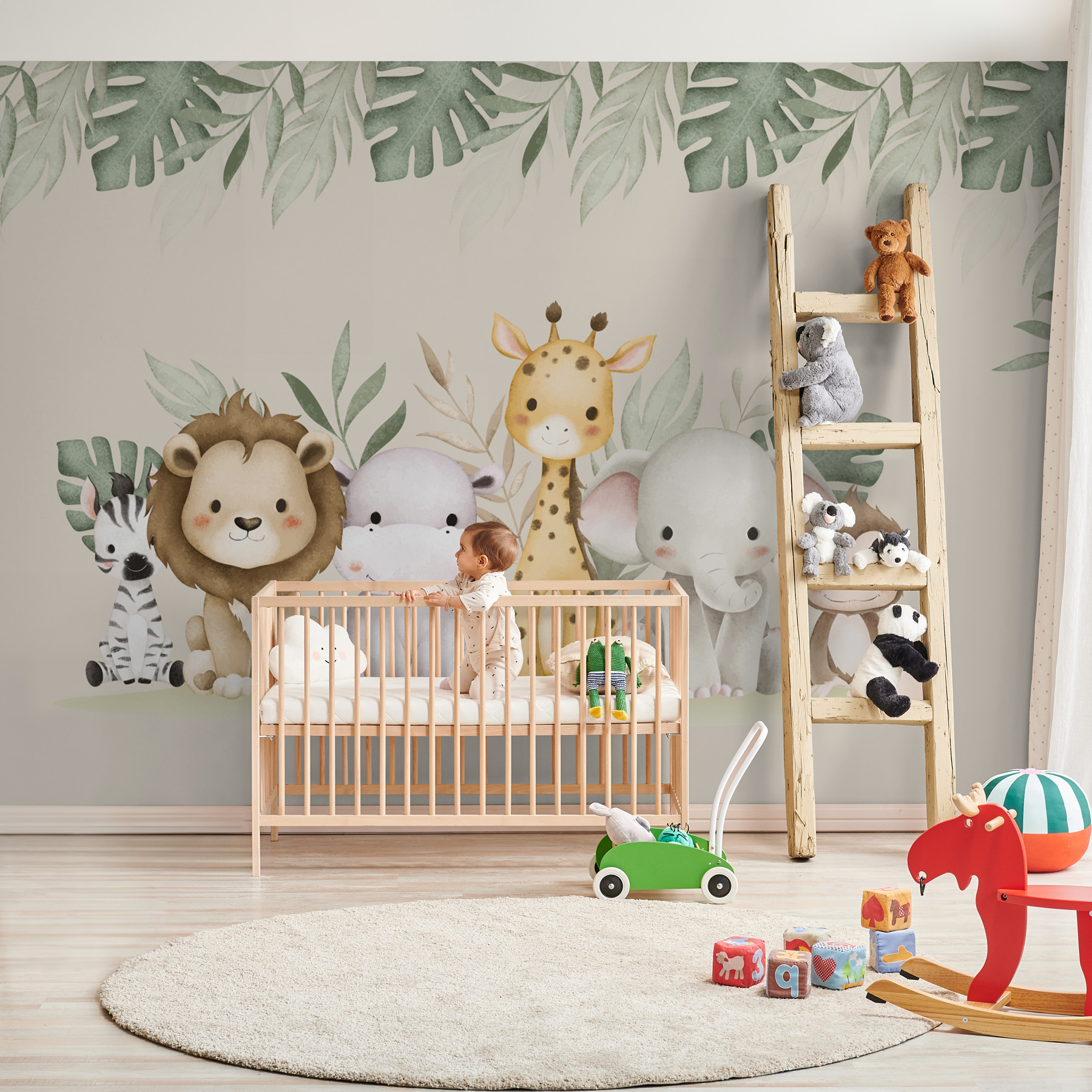 Idealne do pokoju dziecięcego lub dziecięcego pokoju zabaw, te fototapety zmieniają cały klimat – zamieniają nudną ścianę w przygodę w dżungli! Poważnie, kto nie pokochałby przytulnej przestrzeni wypełnionej takimi słodkimi postaciami? Każde zwierzę ma swoją własną osobowość, która po prostu rzuca się w oczy. Delikatne, pastelowe odcienie zmieszane z bujnymi, zielonymi liśćmi? To jak przeniesienie kawałka natury do wnętrza, ale o wiele bardziej urocze!