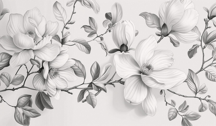 Przekształć nudną ścianę w dzieło sztuki dzięki tej eleganckiej monochromatycznej fototapecie w kwiaty. Wyobraź sobie, że wchodzisz do spokojnego ogrodu, gdzie każdy płatek delikatnie szepcze elegancję i urok. Misterny wzór wprowadza uspokajającą atmosferę, idealną dla każdej przestrzeni potrzebującej delikatnego dotyku natury. Wyobraź sobie, jak przyjaciele zbierają się, podziwiając to oszałamiające tło, a może nawet rozlewając drinka w podekscytowaniu – uff! Ale nie martw się, chodzi o doświadczenie, prawda? Ta fototapeta oddaje istotę spokoju, jednocześnie bez wysiłku łącząc się z dowolnym stylem wystroju. Wnieś powiew świeżego powietrza do domu!