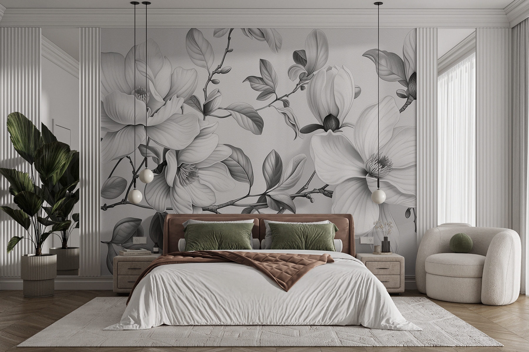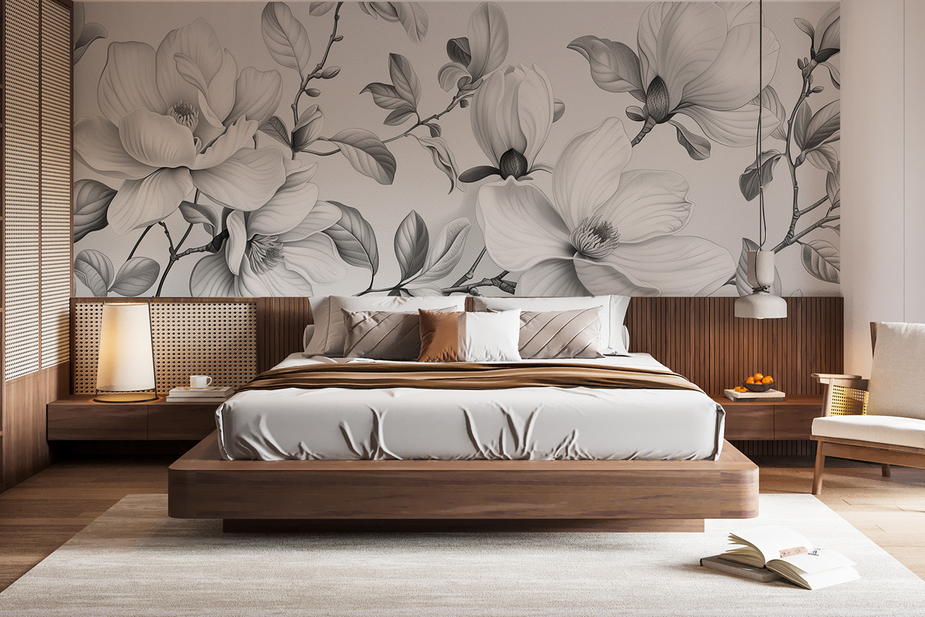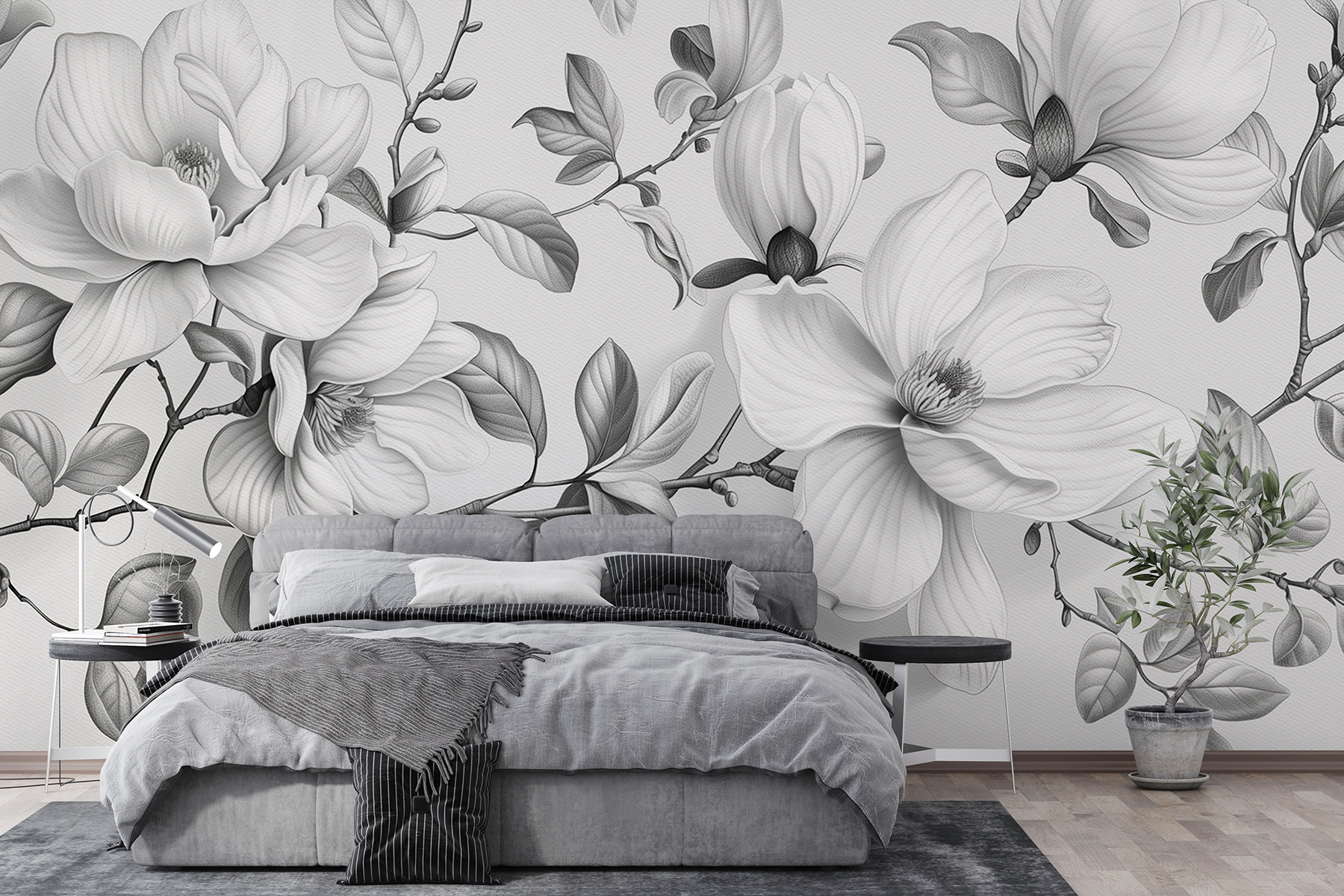 Przekształć nudną ścianę w dzieło sztuki dzięki tej eleganckiej monochromatycznej fototapecie w kwiaty. Wyobraź sobie, że wchodzisz do spokojnego ogrodu, gdzie każdy płatek delikatnie szepcze elegancję i urok. Misterny wzór wprowadza uspokajającą atmosferę, idealną dla każdej przestrzeni potrzebującej delikatnego dotyku natury. Wyobraź sobie, jak przyjaciele zbierają się, podziwiając to oszałamiające tło, a może nawet rozlewając drinka w podekscytowaniu – uff! Ale nie martw się, chodzi o doświadczenie, prawda? Ta fototapeta oddaje istotę spokoju, jednocześnie bez wysiłku łącząc się z dowolnym stylem wystroju. Wnieś powiew świeżego powietrza do domu!