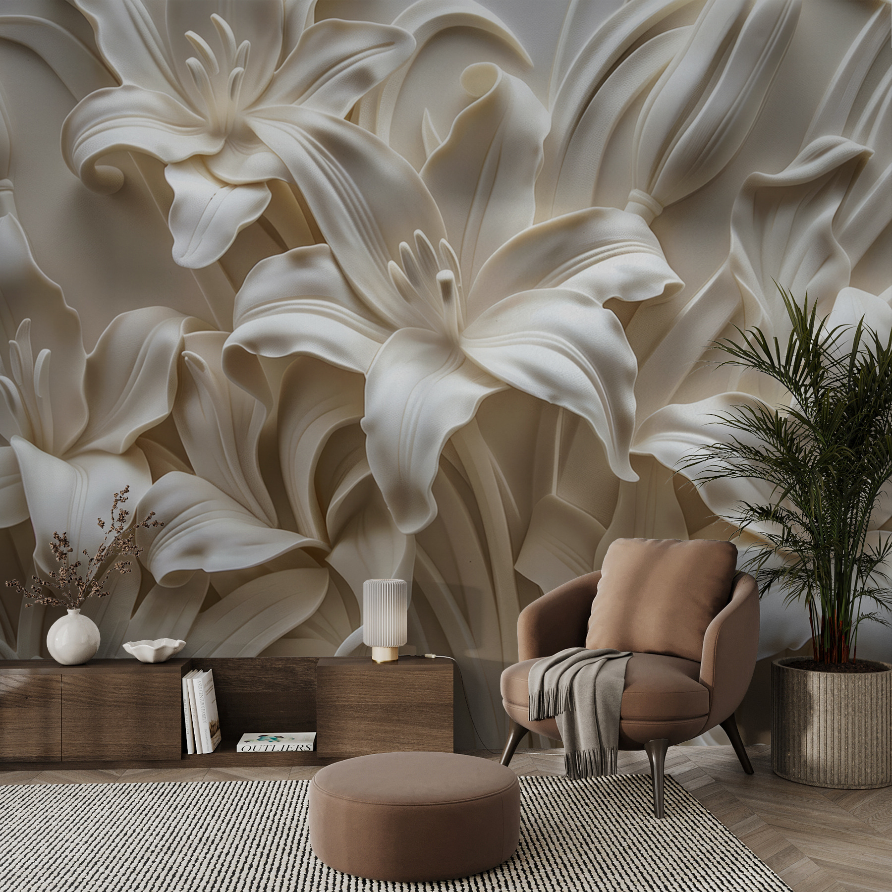 Wyobraź sobie, że wchodzisz do pokoju i jesteś witany przez wybuch eleganckich, kremowych lilii, które wyglądają, jakby delikatnie wyłaniały się ze ściany – mówimy o czynniku wow! Fototapeta “Fototapeta w01433” wnosi odrobinę szykownego wyrafinowania dzięki kwiatowemu wzorowi 3D. To nie jest po prostu kolejny wydruk ścienny; dodaje tekstury, głębi i spokojnej atmosfery do każdej przestrzeni. Idealny dla kogoś, kto jest zmęczony płaskimi, nudnymi ścianami i pragnie dodatkowej odrobiny stylu.