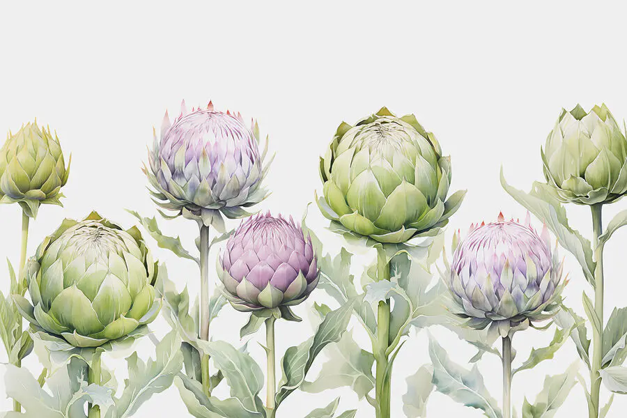 Wyobraź sobie, że siedzisz w swoim ulubionym fotelu, z parującą filiżanką herbaty w ręku i wpatrujesz się w te wspaniałe kwiaty karczocha – wiem, brzmi dziwnie, ale po prostu na nie spójrz! “Fototapeta ścienna w01438 jest jak delikatny szept natury w twoim pokoju. Te akwarelowe zielenie i fiolety wprowadzają atmosferę spokoju… prawie jakbyś mógł dotknąć miękkich płatków. Idealny dla miłośników przyrody lub każdego, kto pragnie szybkiej ucieczki od miejskiego zgiełku. Do tego te detale! To jak ogród namalowany specjalnie dla ciebie. Może sprawić, że zechcesz założyć mini ogródek ziołowy lub przynajmniej urządzić przyjęcie z karczochami w roli głównej.