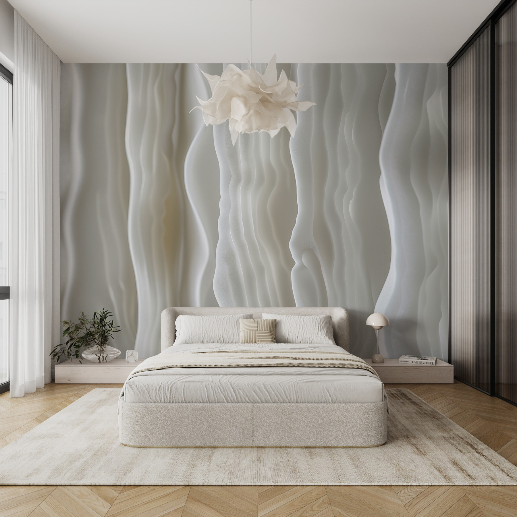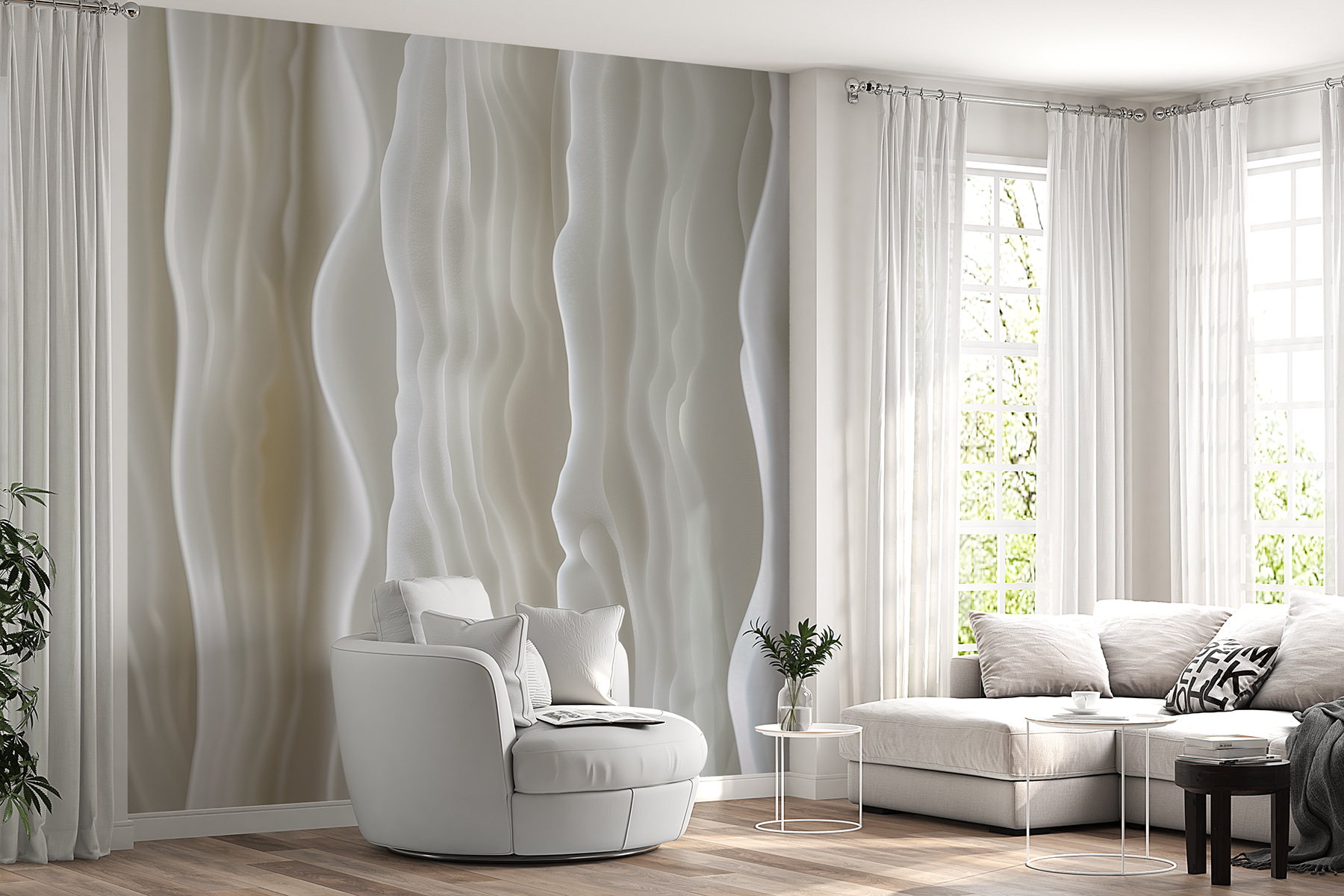 Wyobraź sobie, że wchodzisz do pokoju, w którym ściany wydają się falować jak delikatna bryza na spokojnym morzu. Poznaj fototapetę “Undulating White” – oszałamiający taniec miękkich abstrakcyjnych fal, który przekształca każdą przestrzeń w nowoczesną oazę. Te płynne linie! Dodają głębi i niemal magicznego spokoju. Idealna do przytulnego zakątka lub nowego, fantazyjnego biura, szepcze wyrafinowanie z odrobiną kaprysu. To jak posiadanie mini galerii sztuki w domu. Znajomi mogą nawet zapytać: “Przemeblowałeś?”. Po prostu uśmiechnij się i pozwól falom mówić.