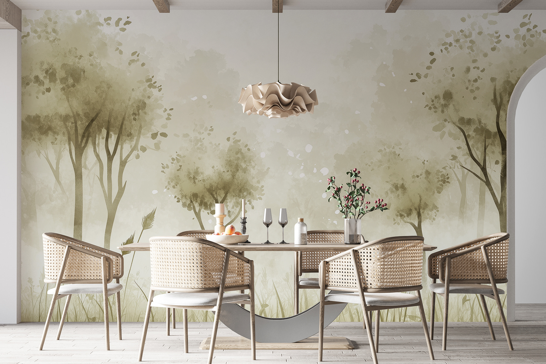 Wyobraź sobie, że każdego ranka budzisz się w tej spokojnej scenerii! Fototapeta “Mglisty krajobraz z drzewami i trawą” jest jak posiadanie własnego miejsca na łonie natury w domu. Idealna dla tych, którzy kochają ciszę i spokój mglistego lasu. Ma ten miękki, senny klimat, jakby natura postanowiła namalować własne arcydzieło. Wyobraź sobie, jak popijasz poranną kawę, gubiąc się w delikatnej mgle, podczas gdy drzewa zdają się opowiadać historie lasu. To nie tylko mural, to twoja osobista droga ucieczki od zwykłego zgiełku. Idealna dla każdego, kto odnajduje piękno w prostocie i odrobinie tajemniczości.