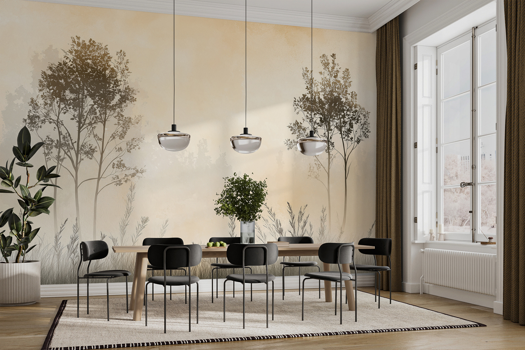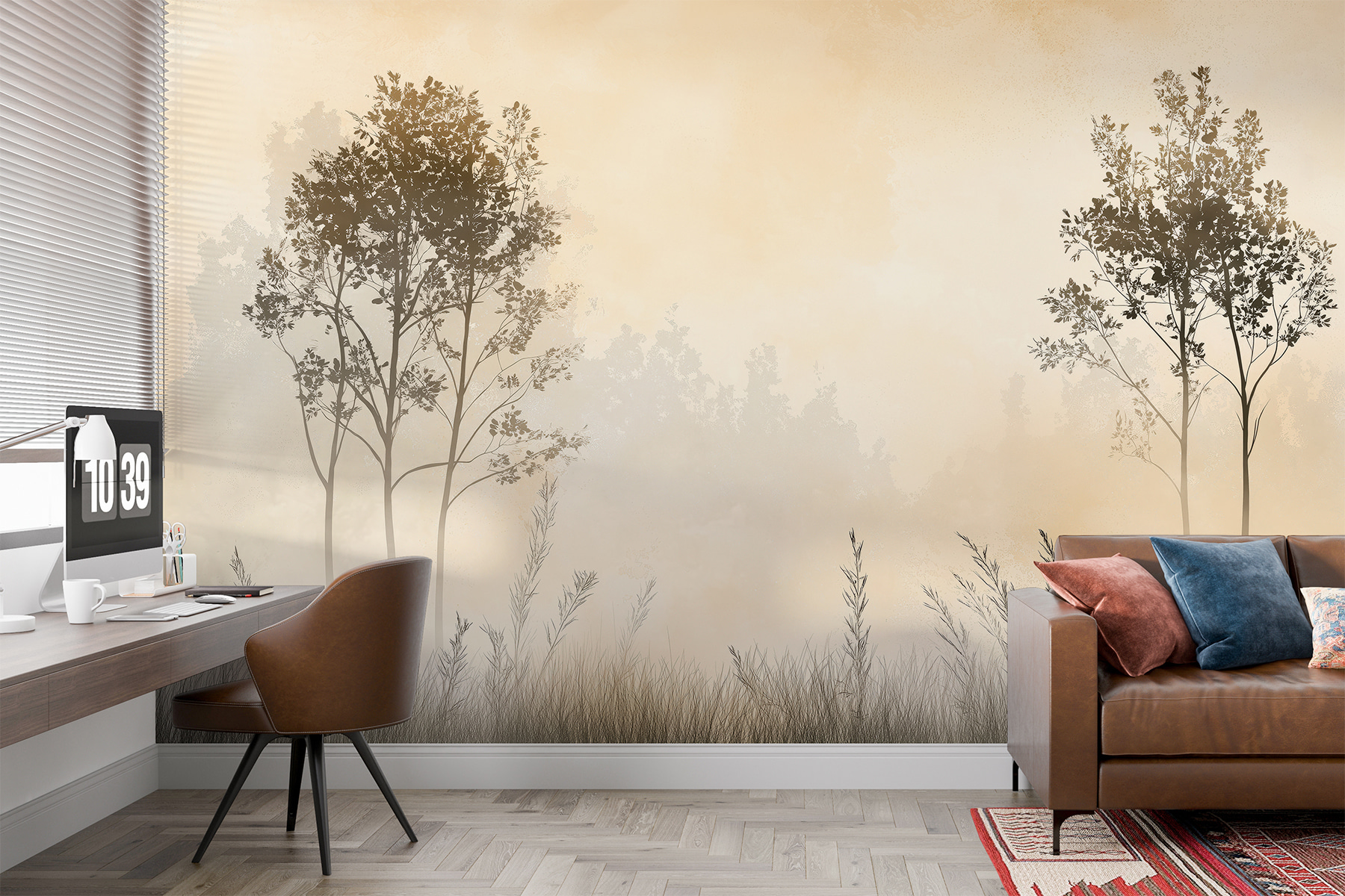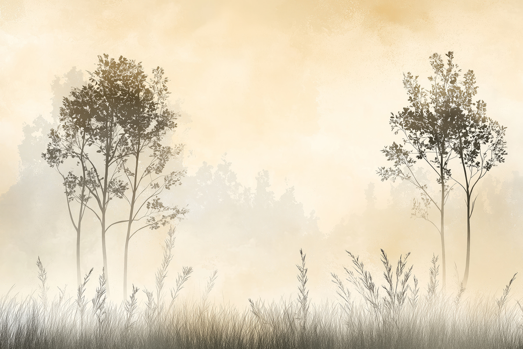 Wyobraź sobie, że budzisz się przy tej sennej fototapecie – “Mglisty krajobraz z drzewami i trawą”. To jak wejście do spokojnego lasu wprost z salonu. Znasz ten uspokajający klimat spokojnego poranka? Ten obraz doskonale to oddaje. Miękka mgła owija się wokół wdzięcznych drzew, przez które prześwituje trawa. Idealny do przekształcenia zwykłej ściany we własne spokojne miejsce.