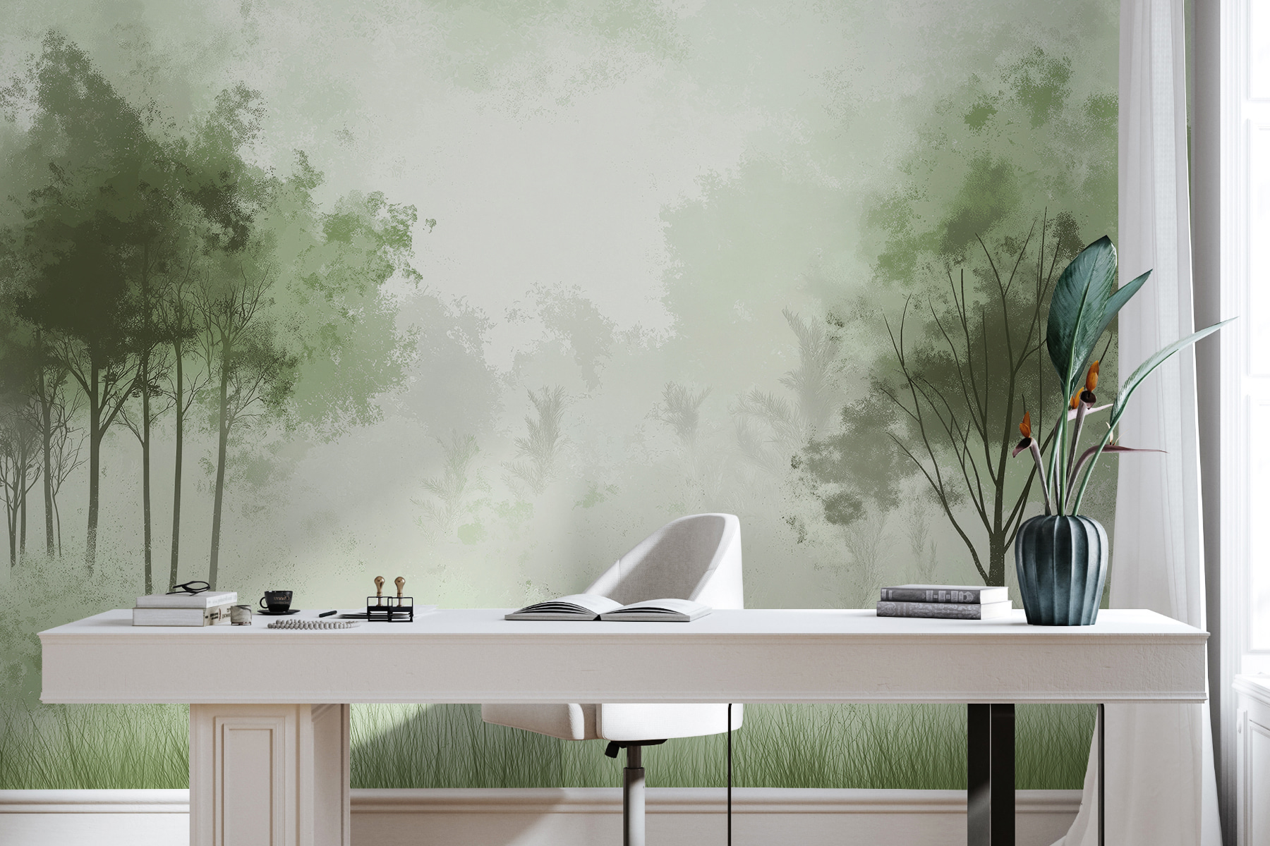 Wyobraź sobie, że wchodzisz do pokoju i od razu czujesz się, jakbyś wszedł do mglistego porannego lasu. Ta fototapeta “Mglisty las z drzewami” właśnie to robi – jest jak delikatny uścisk natury, bezpośrednio na ścianie. Idealna dla każdego, kto kocha spokój lasu, ale woli pominąć komary. Miękka, stonowana zieleń i tajemnicza mgła tworzą uspokajającą atmosferę, dzięki czemu idealnie nadaje się do relaksu po gorączkowym dniu. Jest to rodzaj rzeczy, która może sprawić, że twój kot będzie wpatrywał się w ścianę, przekonany, że gdzieś ukrywa się wiewiórka. Niespodziewany urok gwarantowany.