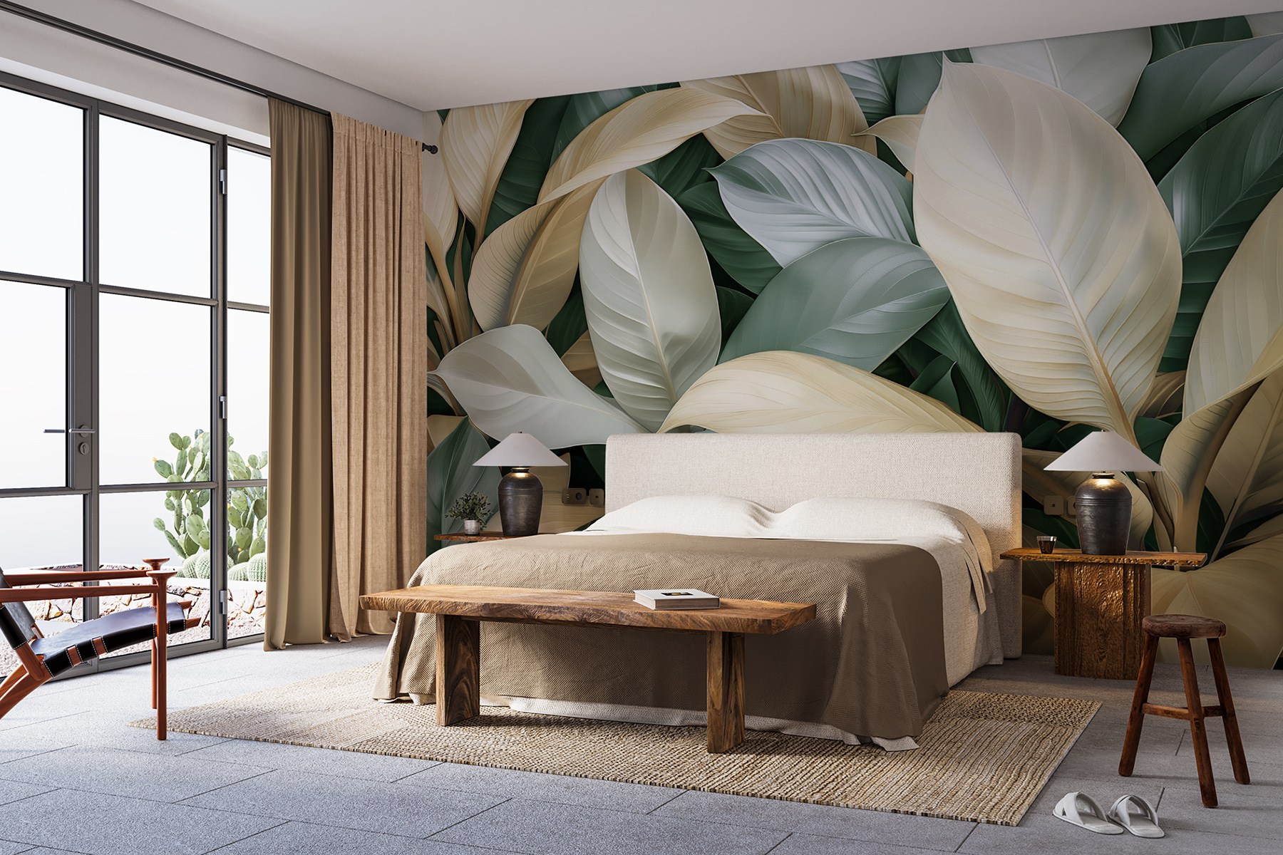 Wyobraź sobie to piękno na ścianie – “Lush Leaves in Soft Hues” jest jak delikatna bryza w formie dzieła sztuki. To nie tylko fototapeta; to mini-wakacje dla twoich oczu. Idealna do wprowadzenia odrobiny świeżego powietrza do wnętrza, bez pyłków. Delikatne zielenie i kremy tańczą razem, jakby były najlepszymi przyjaciółmi od zawsze. Wyobraź sobie, że wracasz do domu po długim dniu, rozkładasz się w swoim ulubionym fotelu i zatracasz się w tych uspokajających liściach. To nie jest tylko dekoracja, mój przyjacielu. To codzienna dawka spokoju.