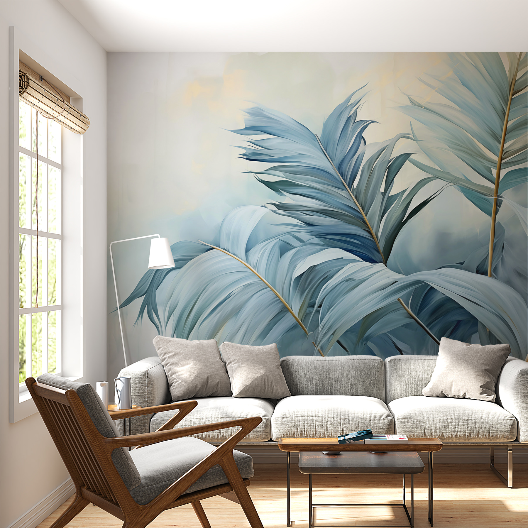 Wyobraź sobie, że każdego ranka budzisz się przy dźwiękach “Whispers of Blue Palms” – to jak wejście do spokojnej dżungli w swoim salonie. Uspokajające błękity i zielenie są idealne do stworzenia kącika zen, w którym można wypić poranną kawę lub zrelaksować się po długim dniu. Możesz nawet zacząć myśleć, że twoja przestrzeń ma swój własny egzotyczny klimat. Ptaki będą zazdrosne o te liście! Co więcej, jest tak wszechstronny – pasuje do niemal każdego stylu wystroju. Zmień zwykłą ścianę w łagodną ucieczkę owiniętą w najdelikatniejsze odcienie natury.