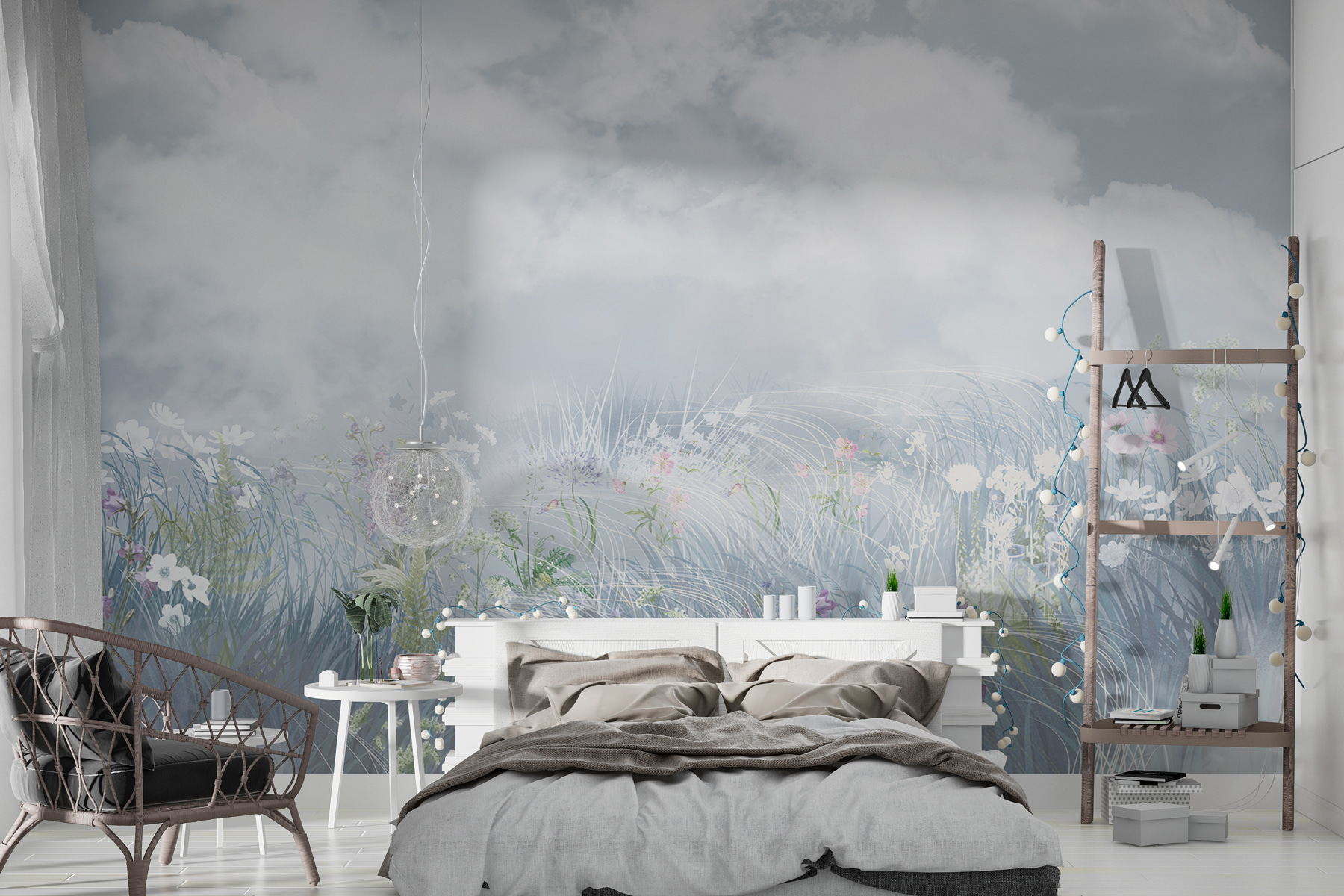 Wyobraź sobie, że każdego dnia budzisz się na polu kwiatów – bez wychodzenia z wygodnego łóżka. Na tej fototapecie chmury są tak puszyste, że praktycznie dryfują po ścianie, a polne kwiaty zdają się kwitnąć na twoich oczach. To jak akwarelowy sen na ścianie. Idealny dla tych, którzy chcieliby zdrzemnąć się na łące (bez mrówek). Ma ten magiczny sposób otwierania pokoju, sprawiając, że czuje się spokojny i przewiewny. Idealna ucieczka. Z herbatą w ręku można zapomnieć, że jest się w domu. Błogo, nieprawdaż?