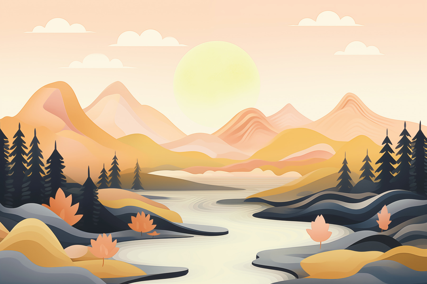 Wyobraź sobie okno, które otwiera się na rzekę wijącą się cicho przez spokojną dolinę, otoczoną górami skąpanymi w delikatnym świetle. Ta fototapeta to nie tylko grafika ścienna – to jak zatrzymanie spokojnej chwili w czasie. Idealna do każdego pomieszczenia, w którym chcesz odrobiny spokoju. Wyobraź sobie, że siedzisz z filiżanką herbaty, a piękno natury zdobi twoją przestrzeń. Jest coś w tych łagodnych krzywiznach i spokojnych kolorach, które po prostu szepczą relaks. To jak uścisk natury, bez robaków. Idealne, co?
