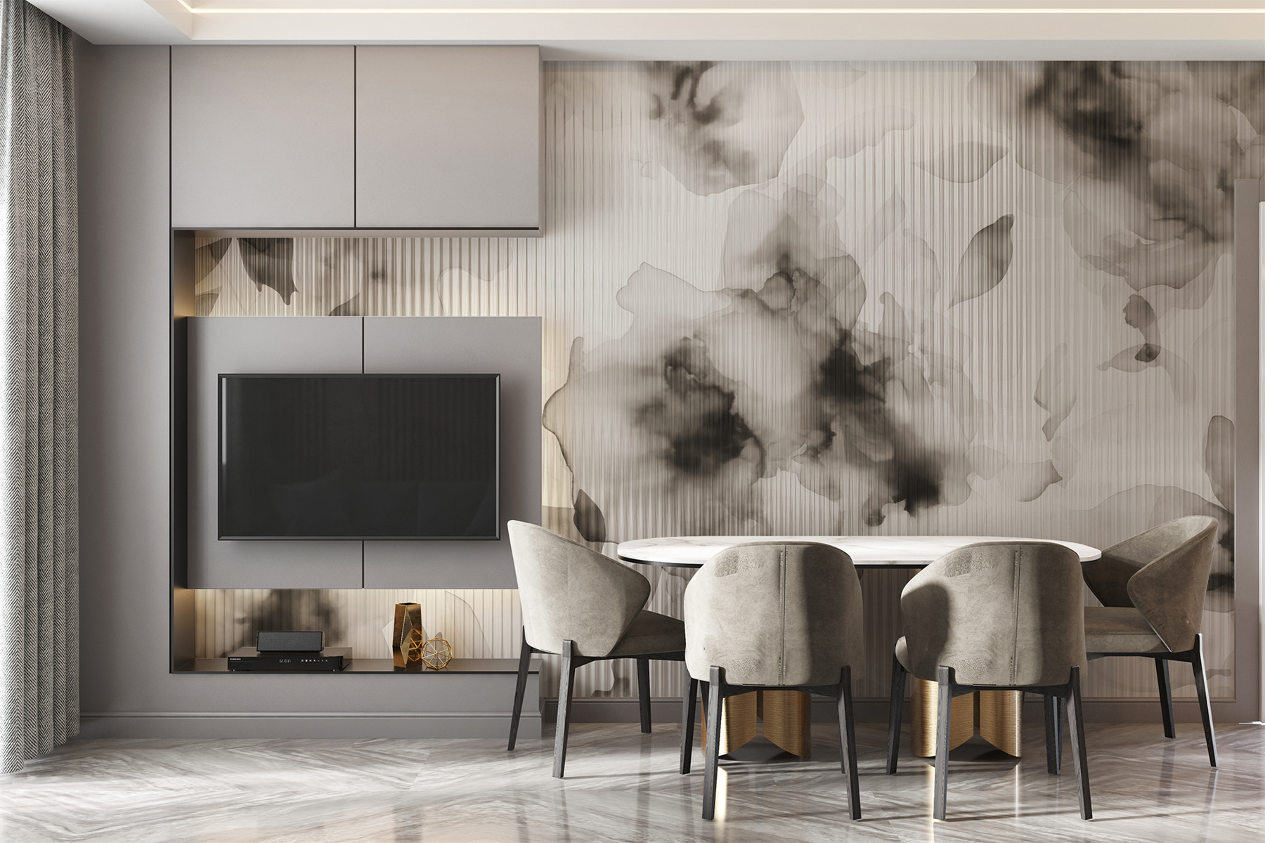 Wyobraź sobie: deszczowe popołudnie, filiżanka herbaty i ulubiona książka. Teraz dodaj tło tego czarującego muralu – “Abstrakcyjny taniec kwiatów w trybie monochromatycznym”. To jak wejście do akwarelowego snu, w którym kwiaty tańczą w delikatnych odcieniach szarości. Idealna dla tych, którzy uwielbiają stonowaną elegancję, ale potajemnie pragną odrobiny polotu. Szepcze wyrafinowanie, jednocześnie sprawiając, że każda przestrzeń jest przytulna i nieskończenie intrygująca. Dodatkowo, z pewnością wywoła kilka rozmów (lub marzeń), gdy wpadną tu znajomi.