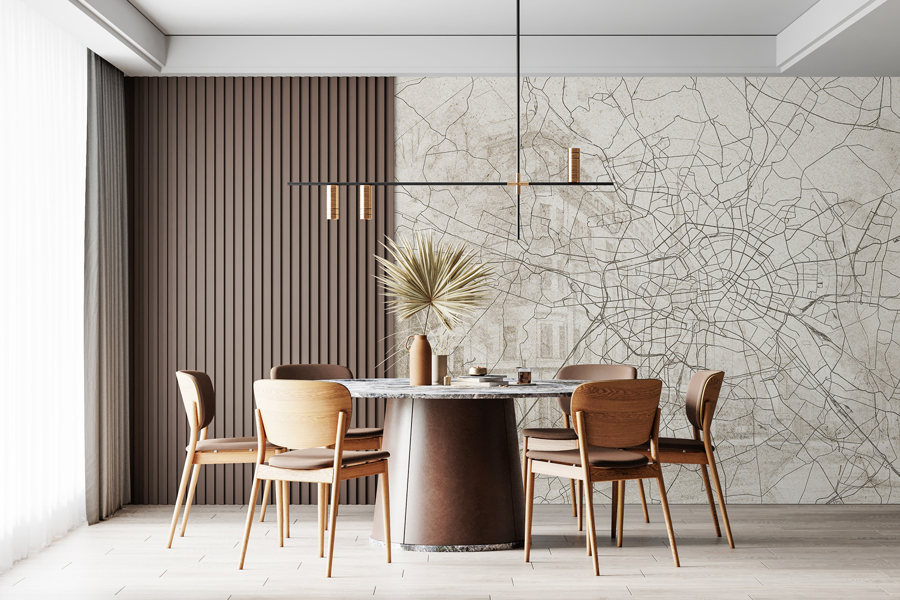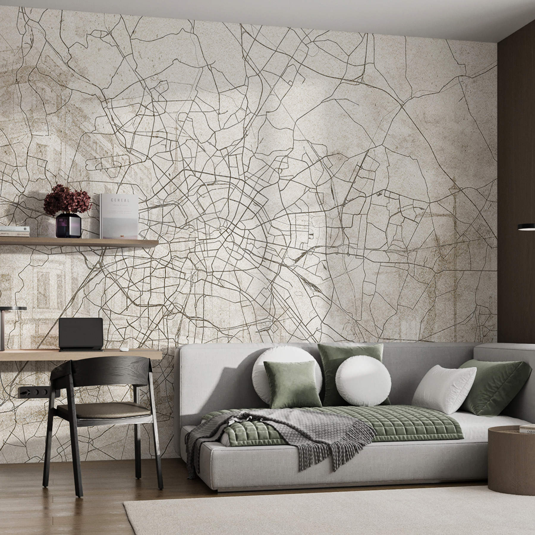 Wyobraź sobie, że wchodzisz do pokoju i wita Cię misterny mural z mapą, odkrywający sekrety miasta. To jak widok z lotu ptaka bez opuszczania kanapy. Ta fototapeta ścienna opowiada historie o krętych drogach i ukrytych ścieżkach, jakbyś był współczesnym odkrywcą – bez pęcherzy. Ziemiste odcienie płynnie się ze sobą łączą, a odrobina nostalgii miesza się z przygodą. Idealny dla marzycieli i wędrowców, którzy lubią dobre marzenia o wędrówce. Z pewnością wywoła rozmowy – każdy uwielbia “gubić się” w dobrej mapie!