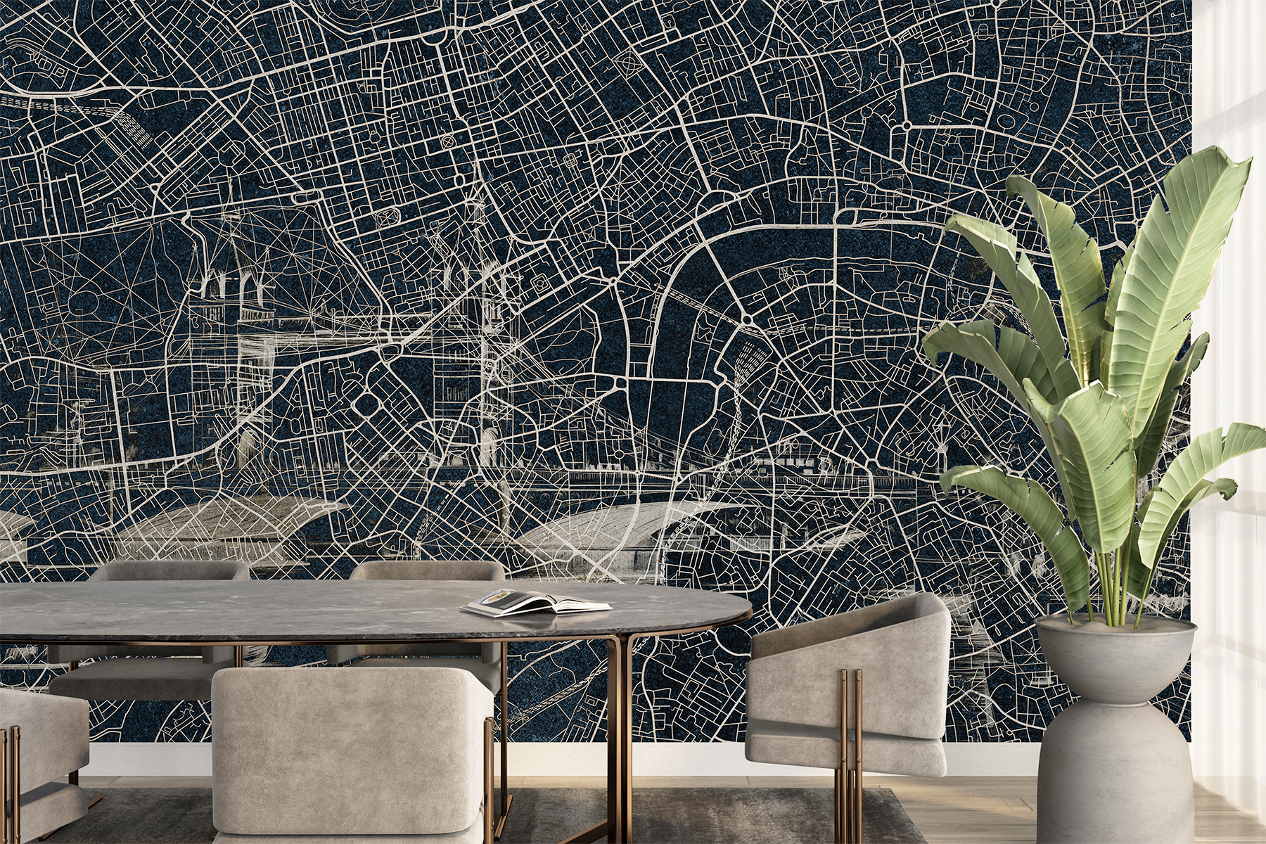 Wyobraź to sobie: mapa miasta rozpryśnięta na ścianie. To nie jest zwykła mapa; to rozległa miejska dżungla uchwycona z taką szczegółowością, że można niemal usłyszeć szum ruchu ulicznego. Idealna dla tych, którzy uwielbiają się gubić, ale nadal czują się komfortowo, znając drogę do domu. Niezależnie od tego, czy jesteś miłośnikiem architektury, czy po prostu lubisz wyjątkowe dekoracje, ta fototapeta przekształci każde pomieszczenie w żywy, oddychający pejzaż miejski. To tak, jakby mieć własną miejską przygodę w domu – bez konieczności dojeżdżania do pracy! Idealna do pobudzania rozmów lub marzeń.