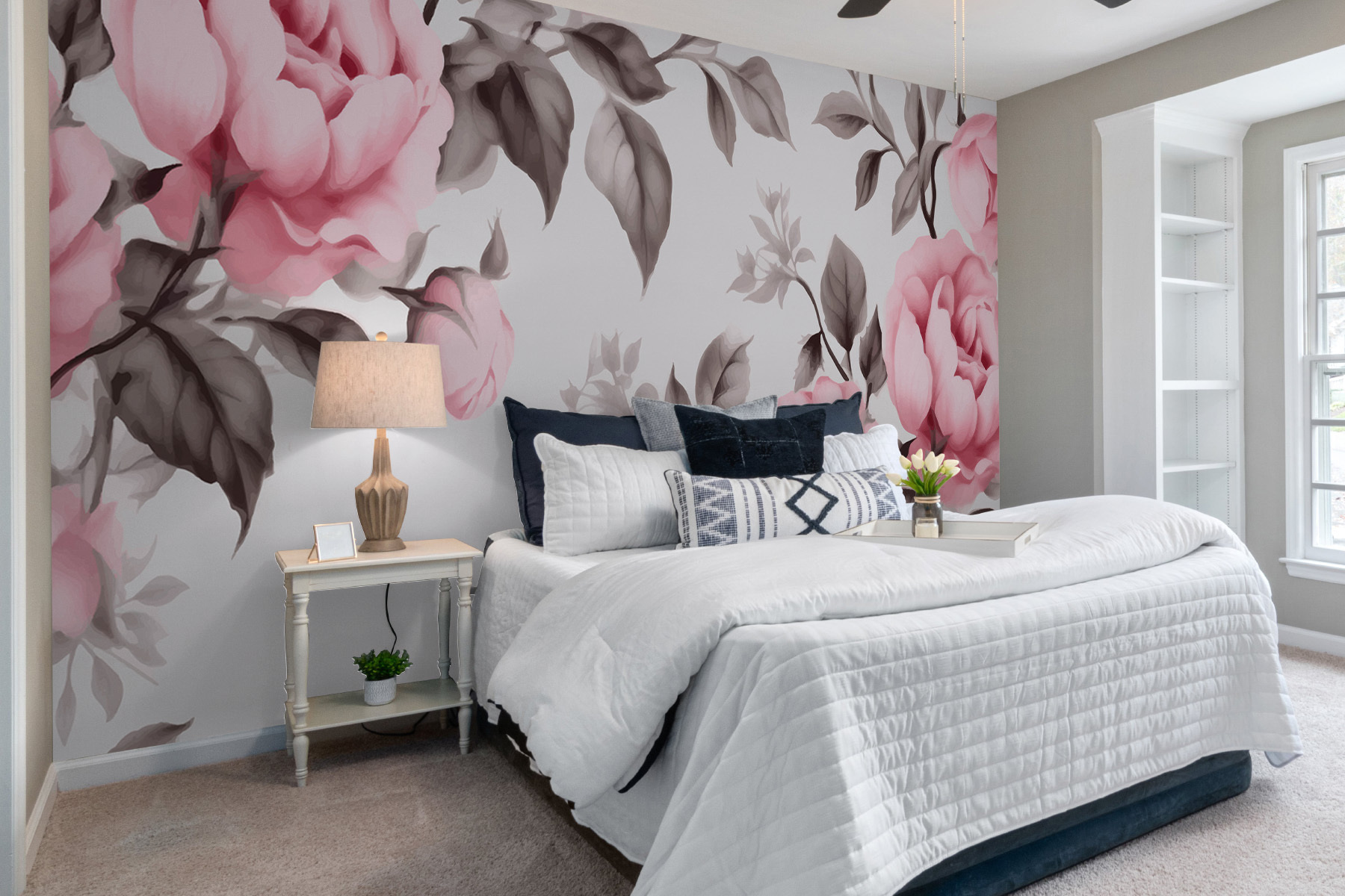 Wyobraź sobie, że wchodzisz do pokoju i witają Cię “Blushing Blooms in Soft Shades” – to jak wejście do sennego ogrodu bez potrzeby podlewania. Te róże i piwonie, w delikatnych różach, szepczą elegancję, zamieniając każdą nudną ścianę w płótno delikatnego romansu. Idealne dla tych, którzy kochają odrobinę natury, ale nie są miłośnikami zieleni. Wyobraź sobie deszczowe popołudnie, filiżankę herbaty i te kwiaty otulające cię przytulnym ciepłem. To mały kawałek kwiatowego nieba – bez kichania pyłków!