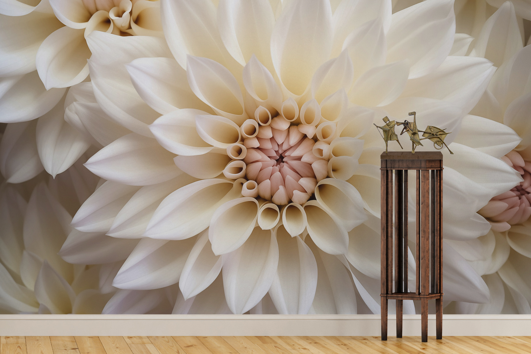 Wyobraź sobie, że wchodzisz do pokoju, w którym te kremowe płatki rozwijają się specjalnie dla ciebie. Ta fototapeta przekształca każdą przestrzeń w spokojną, kwiatową przystań, zapraszając miękkie, naturalne światło, które tańczy po jej delikatnym wzorze. Wyobraź sobie popijanie kawy podczas wpatrywania się w skomplikowane warstwy płatków, z których każdy szepcze historie o pięknie natury. Przyjaciele poczują się wciągnięci, dzieląc ciche chwile lub śmiech pośród tego botanicznego uścisku. To jak przeniesienie ogrodu do wnętrza – bez wysiłku poprawia nastrój, jednocześnie czując się orzeźwiająco żywym. Idealny dla każdego, kto chce odrobiny spokoju w swoim domu!