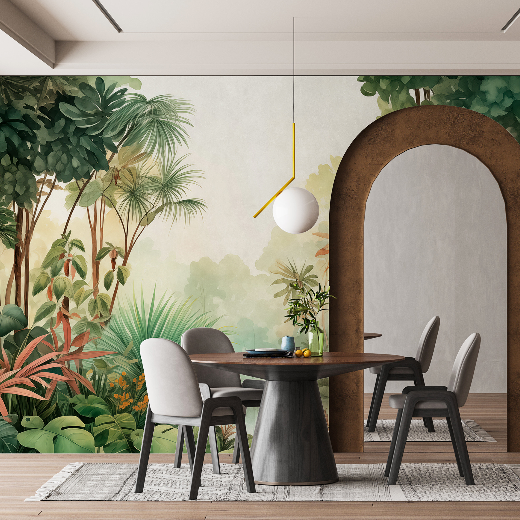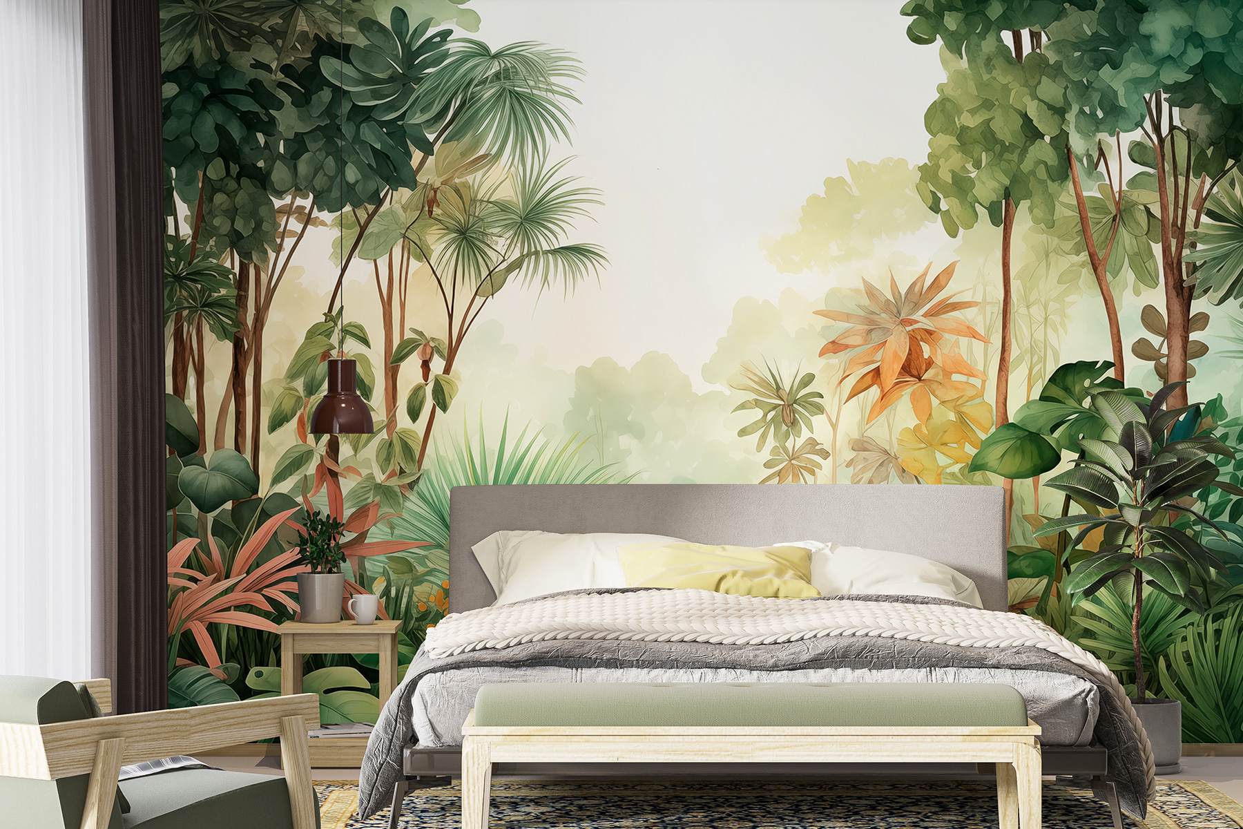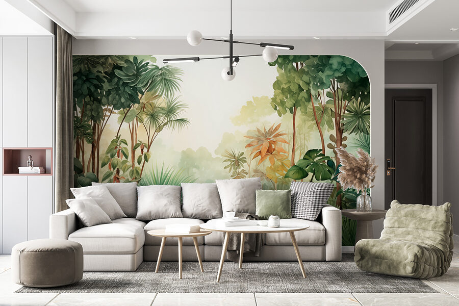 Wyobraź sobie, że wchodzisz do pokoju i natychmiast przenosisz się do spokojnego, akwarelowego lasu. Ta fototapeta przenosi ten bujny klimat dżungli wprost na twoje ściany! To nie tylko obraz – to ucieczka. Zielone odcienie wydają się szeptać spokój – idealny do relaksu po gorączkowym dniu. Wyobraź sobie deszczowy dzień z ulubioną książką, a nawet spotkanie z przyjaciółmi, którzy nie mogą przestać podziwiać Twojej leśnej oazy. Ściany sprawiają wrażenie, jakby przytulały cię do siebie.