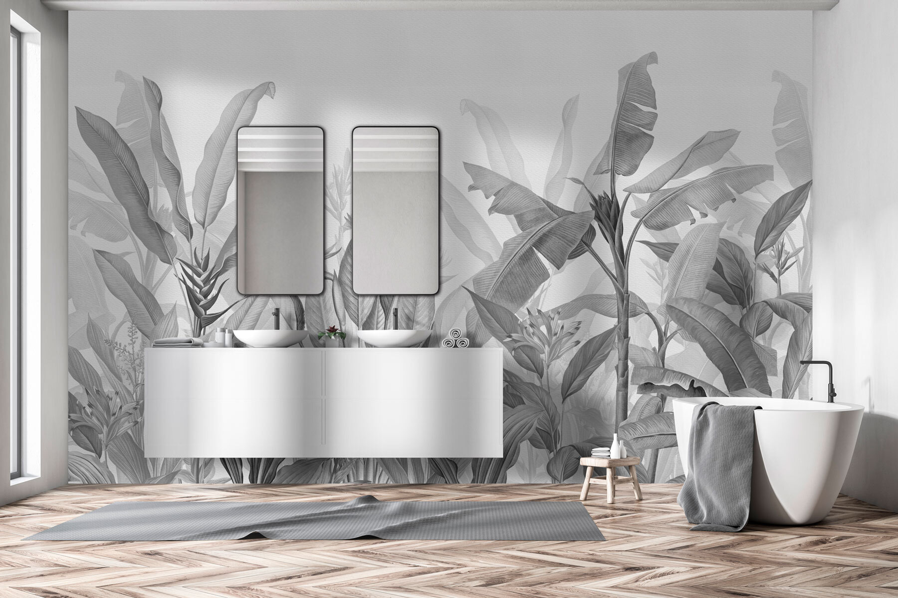 Monochromatyczna dżungla czeka na eksplorację – brzmi jak przygoda, prawda? Wyobraź sobie, że każdego dnia budzisz się w spokojnej dżungli w swoim pokoju! Ta fototapeta to nie tylko dekoracja; to ucieczka. Dzięki eleganckim liściom w odcieniach szarości nadaje przestrzeni wyrafinowany, ale uspokajający klimat. Idealna dla tych, którzy kochają naturę, ale nie hałas. Znajomi będą zaciekawieni, a może nawet odrobinę zazdrośni. Wystarczy pomyśleć o spokojnych porankach popijając kawę, chłonąc relaksującą atmosferę dżungli. Element, który szepcze elegancję z odrobiną dzikiej natury.