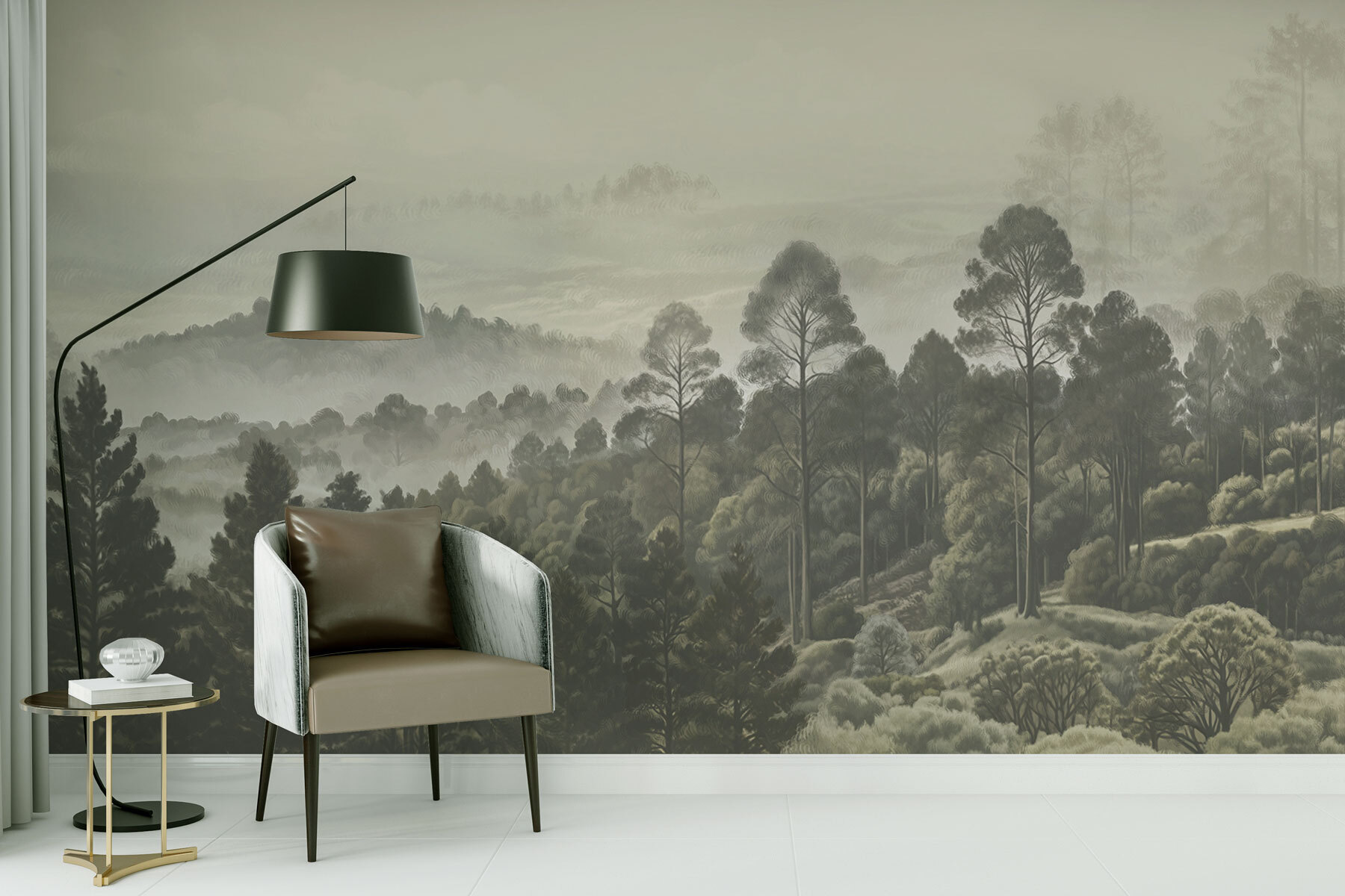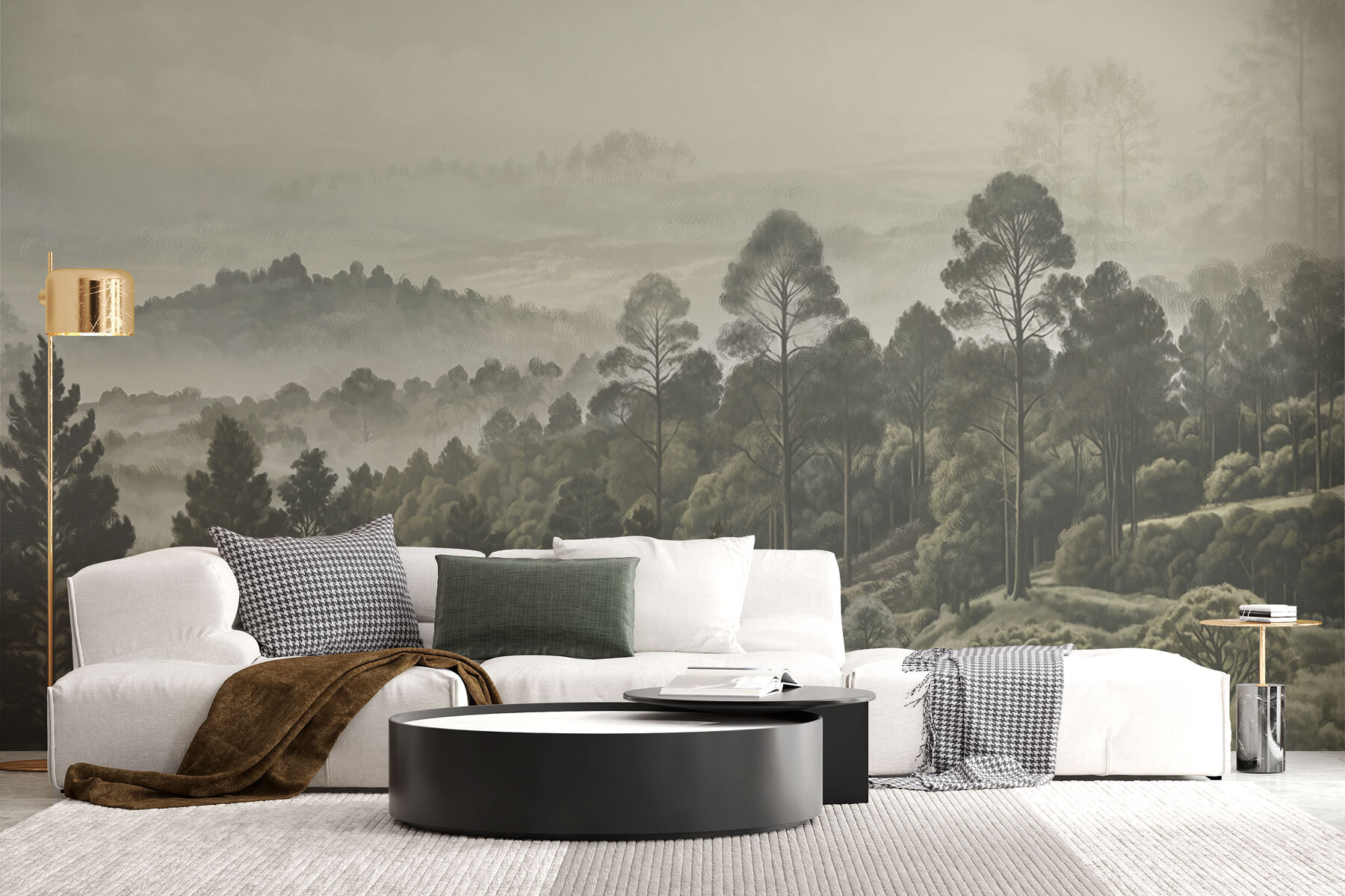 Wyobraź sobie, że popijasz kawę w swoim salonie, ale zamiast patrzeć na zwykłą ścianę, masz tę senną fototapetę z drzewami i mgłą. To jak przytulny, mglisty poranny spacer po lesie – oczywiście bez owadów. Stonowane zielenie i delikatne szarości sprawiają wrażenie delikatnego uścisku, tworząc idealną strefę relaksu. Można nawet zapomnieć, że jest się w pomieszczeniu. To nie tylko fototapeta, to klimat. Subtelna ucieczka bez wychodzenia z domu. Nie zdziw się, jeśli Twoi goście pozostaną tu nieco dłużej!