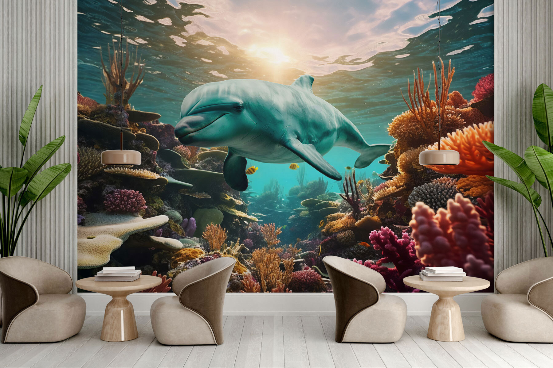 Zanurz się w odrobinie spokoju dzięki tej fototapecie przedstawiającej delfina pływającego spokojnie w tętniącym życiem oceanie. Wyobraź to sobie – ściany przekształcone w senną podwodną ucieczkę, pełną kolorowych koralowców i wesołych ryb. To tak, jakbyś miał okno na jasny, spokojny ocean w swoim domu. Znajomi z pewnością zatrzymają się i będą się gapić, zastanawiając się, czy nie weszli do akwarium. Wyobraź sobie, że budzisz się w tej oszałamiającej scenerii i każdego dnia czujesz się nieco bardziej zrelaksowany. To nie tylko dekoracja; to codzienna przygoda, która czeka, aby się wydarzyć. Idealna do dodania nadmorskiego klimatu, ta fototapeta wnosi słońce i radość do każdej przestrzeni!