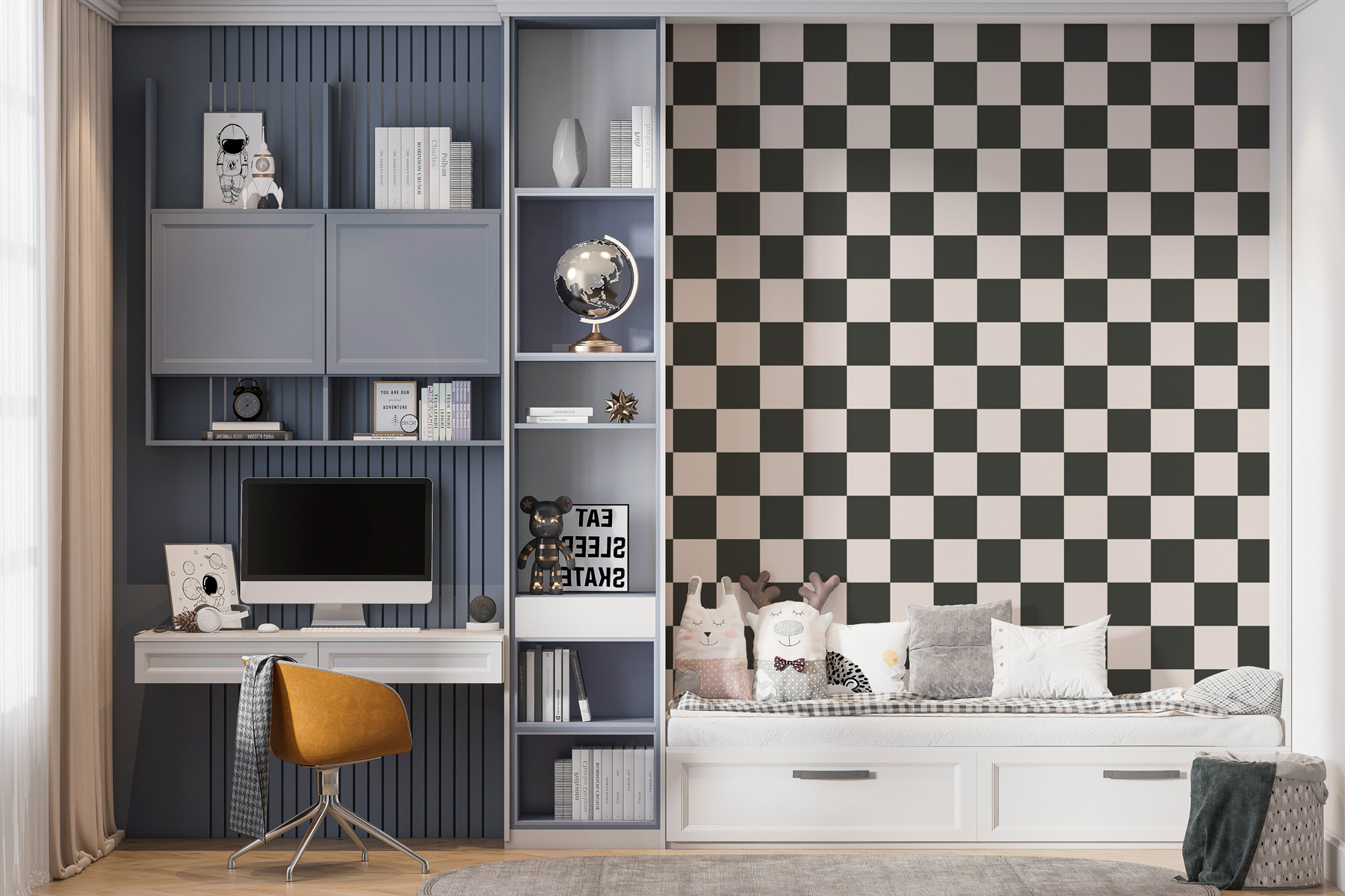 Przekształcanie przestrzeni może być trochę jak magia, prawda? Ta fototapeta ścienna z efektownym wzorem w czarno-białą szachownicę jest jak wejście do wyrafinowanej gry w szachy. Wyobraź sobie, że wchodzisz do pokoju, w którym ściany szepczą elegancję i styl – bardzo szykowne!