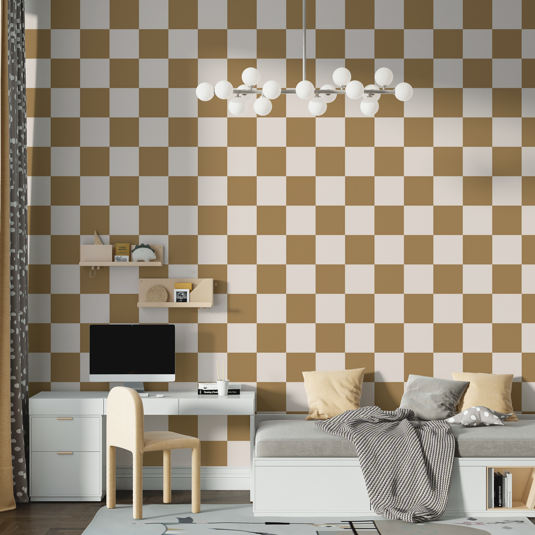 Wyobraź sobie, że wchodzisz do pokoju, w którym czujesz się jak w przytulnej kawiarni, dzięki tej zachwycającej brązowo-białej fototapecie w kratkę. Ma ona klasyczny klimat szachownicy, który wywołuje nostalgię – pomyśl o wieczornych grach lub kuchni babci. Każdy kwadrat wydaje się zapraszać, by usiąść, zrelaksować się i popijać ciepły napój, rozmawiając o wszystkim i o niczym. Miękkie, ziemiste odcienie uziemiają przestrzeń, sprawiając, że czuje się ona zarówno zachęcająco, jak i stylowo. Idealny jako wyrazista ściana lub uzupełnienie kolekcji dziwacznych dzieł sztuki. To jak noszenie ulubionego swetra – znajomy, wygodny i tylko trochę szykowny!
