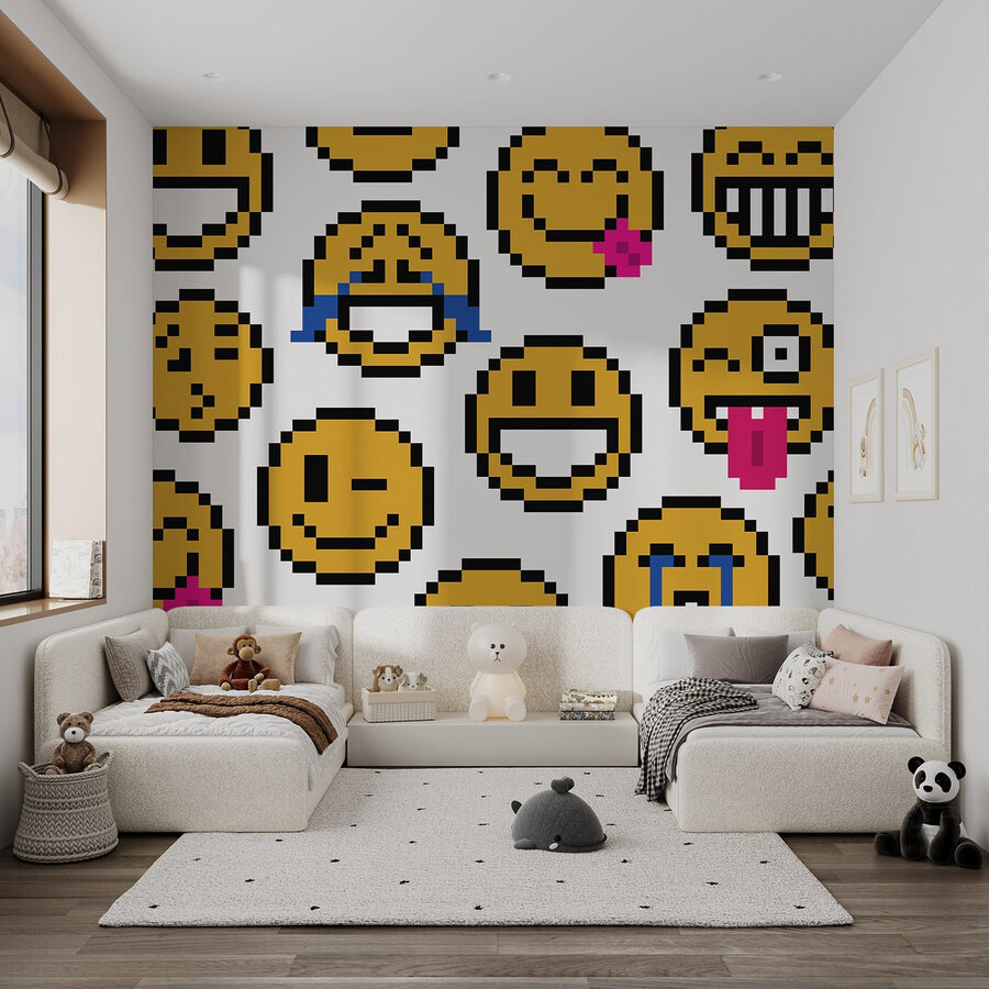 Wnieś odrobinę radości do swojej przestrzeni dzięki tej dziwacznej fototapecie ściennej z uroczą grupą żółtych uśmiechniętych buziek. Wyobraź sobie: wchodzisz do pokoju i od razu czujesz się lżej, otoczony wesołymi wyrazami twarzy, które sprawiają, że się uśmiechasz. To jak impreza na ścianach, gdzie każda twarz ma swój własny klimat. Niezależnie od tego, czy jest to głupkowate mrugnięcie, czy szeroki uśmiech, te postacie opowiadają własne historie. Idealny do biura, pokoju dziecięcego lub dowolnego miejsca, w którym potrzebny jest dobry humor, z pewnością wywoła uśmiech – nawet w najtrudniejsze dni. Niech zacznie się zabawa!