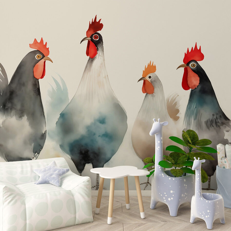 Rozjaśnij każdą przestrzeń dzięki tej zachwycającej fototapecie ściennej przedstawiającej dziwaczną bandę kurczaków, obnoszących się z czerwonymi i białymi piórami, jakby właśnie zeszły z wybiegu mody. Ich żywe osobowości dodają odrobinę humoru, zamieniając zwykłą ścianę w początek rozmowy. Wyobraź sobie, że wchodzisz do pokoju i witają cię ci pierzaści przyjaciele – to tak, jakbyś miał mini farmę w domu! Idealna do kuchni, pokoju zabaw lub gdziekolwiek, gdzie potrzebna jest odrobina radości, ta fototapeta w delikatnych kolorach i zabawnym klimacie z pewnością rozgrzeje serca. Poza tym, kto by się nie uśmiechnął na widok oddziału kurczaków? Czas przywitać się z tym uroczym wystrojem!