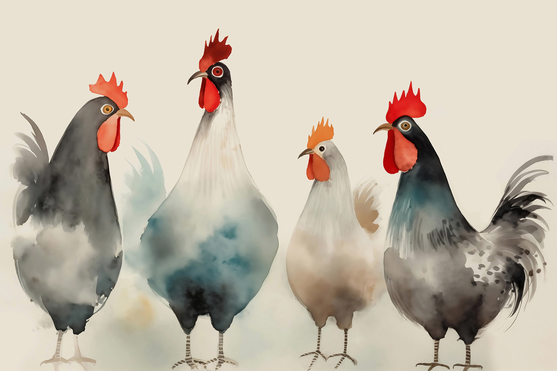Rozjaśnij każdą przestrzeń dzięki tej zachwycającej fototapecie ściennej przedstawiającej dziwaczną bandę kurczaków, obnoszących się z czerwonymi i białymi piórami, jakby właśnie zeszły z wybiegu mody. Ich żywe osobowości dodają odrobinę humoru, zamieniając zwykłą ścianę w początek rozmowy. Wyobraź sobie, że wchodzisz do pokoju i witają cię ci pierzaści przyjaciele – to tak, jakbyś miał mini farmę w domu! Idealna do kuchni, pokoju zabaw lub gdziekolwiek, gdzie potrzebna jest odrobina radości, ta fototapeta w delikatnych kolorach i zabawnym klimacie z pewnością rozgrzeje serca. Poza tym, kto by się nie uśmiechnął na widok oddziału kurczaków? Czas przywitać się z tym uroczym wystrojem!