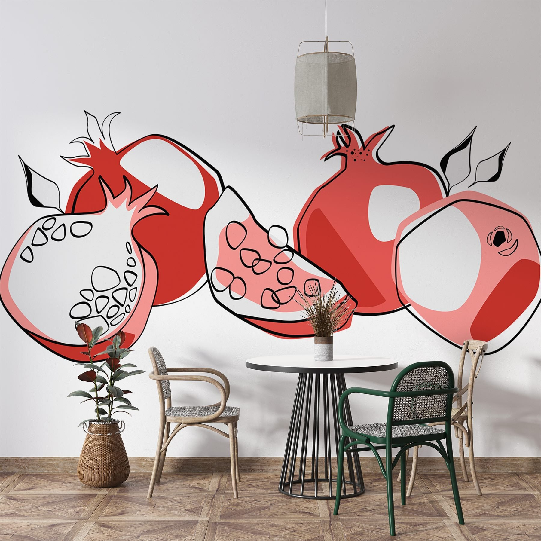 Przekształć każdą ścianę w żywą ucztę dla oczu dzięki tej oszałamiającej fototapecie “Grupa granatów”. To nie tylko dekoracja, ale także sposób na rozpoczęcie rozmowy. Wyobraź sobie przyjaciół podziwiających ją i próbujących przypomnieć sobie, kiedy ostatni raz jedli granat – prawdopodobnie zbyt dawno temu! Żywe czerwienie i zabawne linie nadają świeży, owocowy klimat, który może sprawić, że kuchnia poczuje się jak słoneczny sad. Wyobraź sobie, że każdego ranka budzisz się z taką eksplozją kolorów; z pewnością pobudzi to kreatywność i radość. Idealny dla smakoszy lub każdego, kto kocha odrobinę natury we wnętrzach.