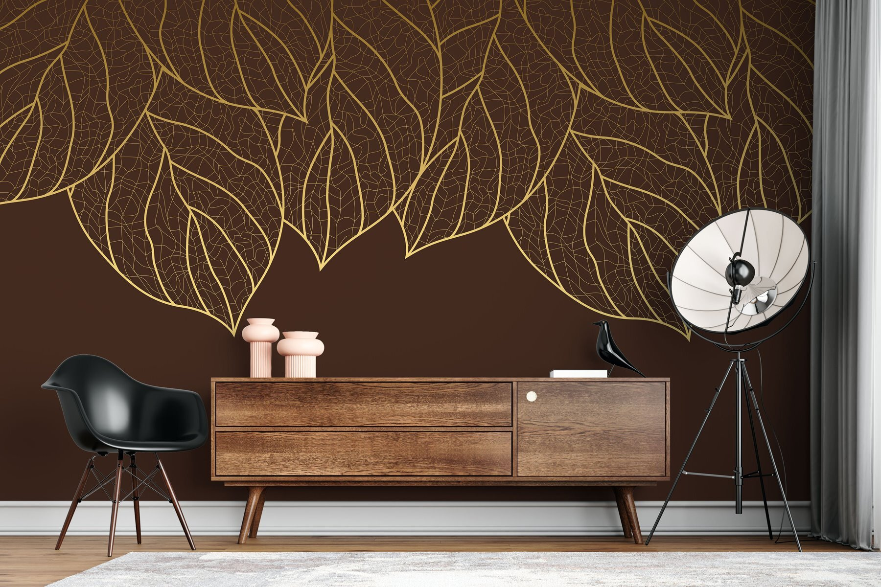 Odmień każde pomieszczenie dzięki tej uroczej fototapecie ściennej z piękną grupą liści na bogatym brązowym tle. To jak przeniesienie małego lasu do swojego domu. Wyobraź sobie, że popijasz kawę, chłonąc te żywe liście – poczujesz się jak w przytulnej kawiarni w lesie. Idealna do salonu lub gabinetu, ta fototapeta doda ciepła i powiewu natury. Niezależnie od tego, czy jesteś zapalonym miłośnikiem roślin, czy po prostu potrzebujesz odrobiny ziemistości, jest to wspaniały początek rozmowy, a kto nie kocha dobrej historii o zagubieniu się na świeżym powietrzu?
