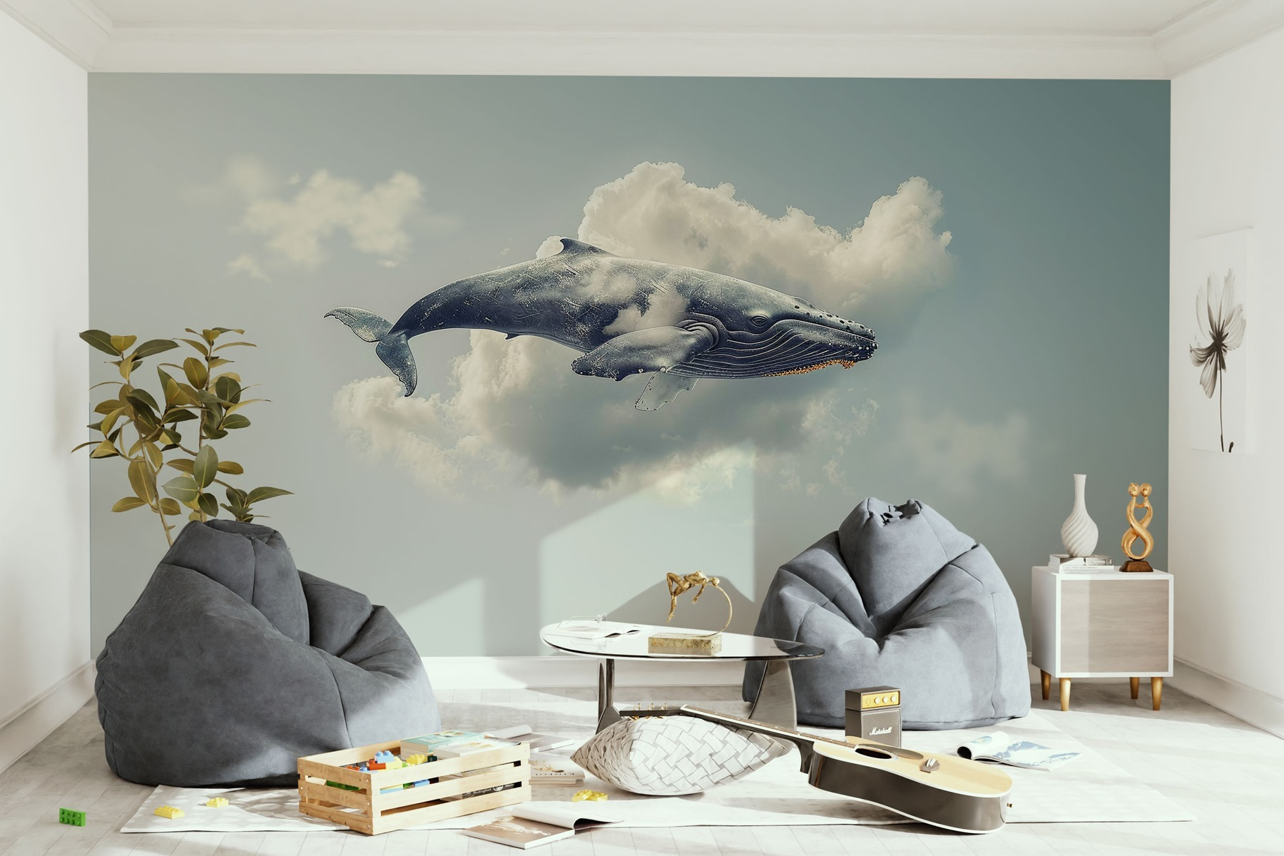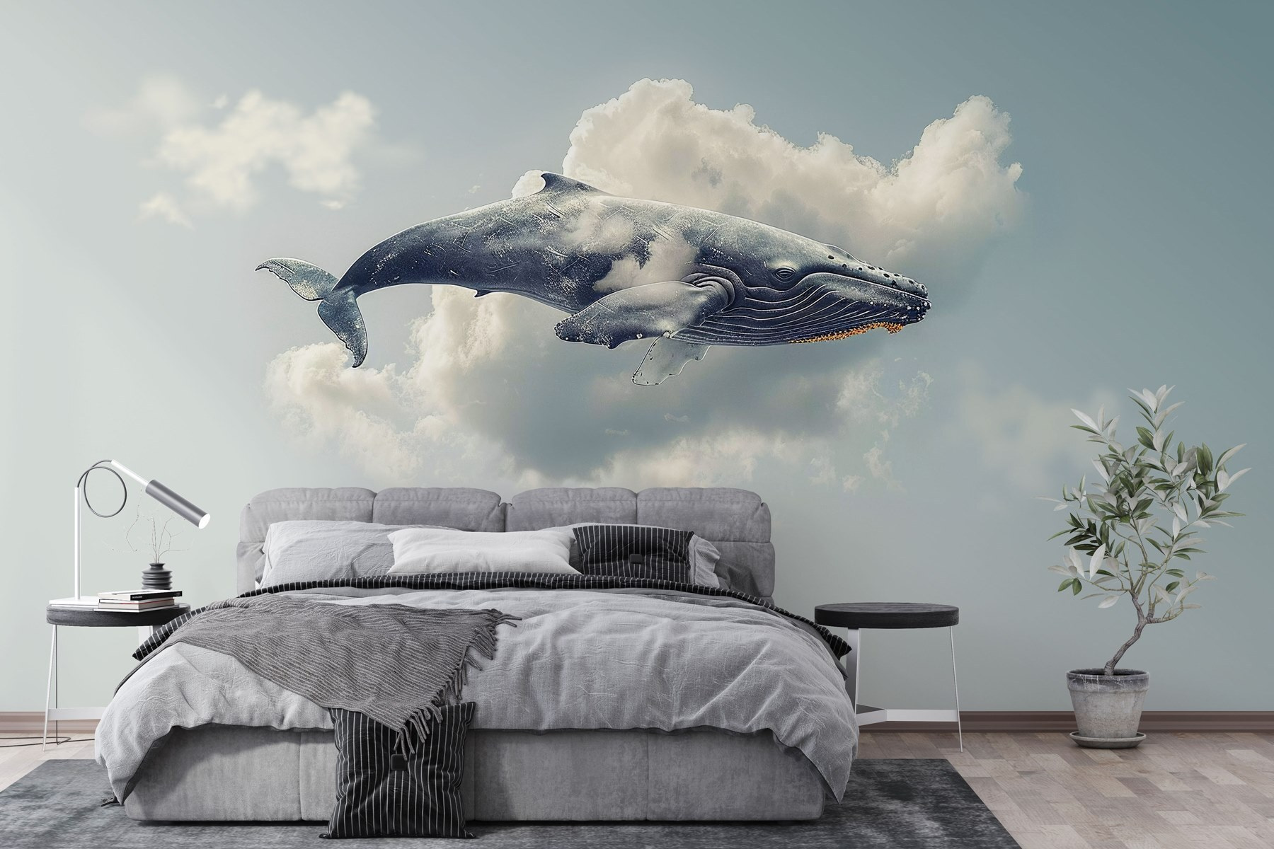 Wyobraź sobie: gigantyczny wieloryb, nie w oceanie, ale spokojnie szybujący przez puszyste chmury. Ta fototapeta ścienna “Wieloryb lecący w przestworzach” dodaje kapryśnego charakteru każdej przestrzeni. Wyobraź ją sobie w przytulnym salonie lub pokoju dziecięcym – to jak przeniesienie kawałka sennego morskiego życia prosto na ścianę!