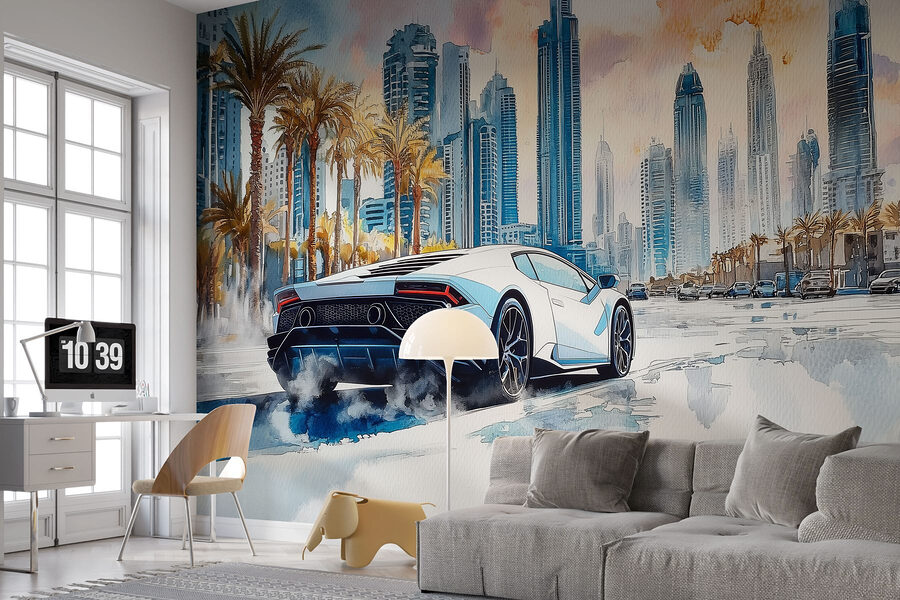 Odmień każdą przestrzeń dzięki tej żywej fototapecie ściennej przedstawiającej elegancki biały samochód sportowy pędzący drogą wysadzaną palmami. To jak przeniesienie esencji nadmorskiego rejsu prosto do swojego salonu! Wyobraź sobie, że popijasz poranną kawę, marząc o epickiej podróży, z wiatrem we włosach i ciepłym słońcem na twarzy. Mieszanka miejskich drapaczy chmur i bujnych palm wywołuje poważne wakacyjne wibracje, sprawiając, że trudno się nie uśmiechnąć. Dodatkowo, kolory są idealne do wywołania radości, a może nawet odrobiny wędrówki. Ta fototapeta to nie tylko dekoracja; to przypomnienie, że przygoda jest tuż za rogiem!