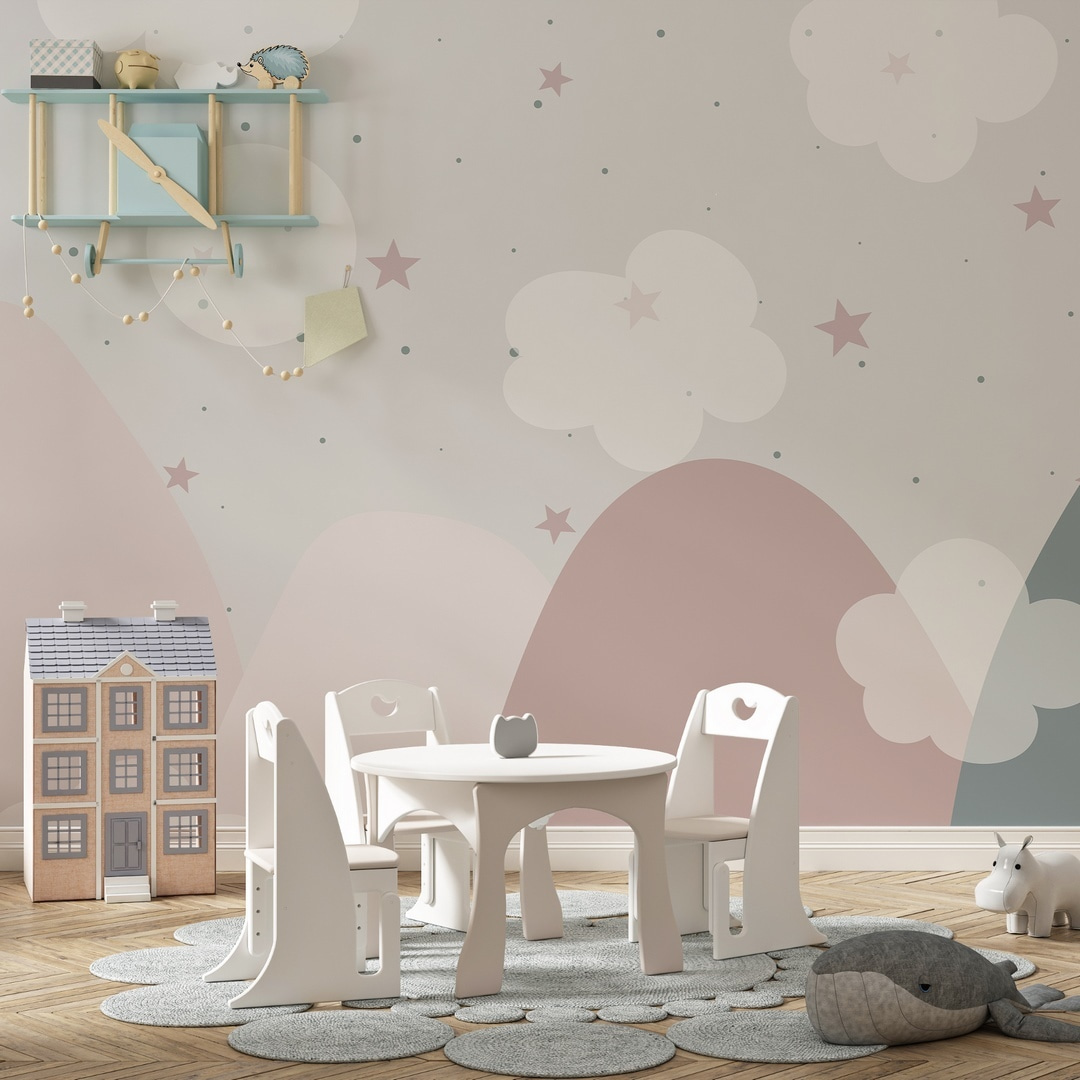 Przekształć dowolną przestrzeń w senną ucieczkę dzięki tej uroczej fototapecie ściennej “Krajobraz z chmurami i gwiazdami”. Wyobraź sobie maluchy wpatrujące się w te miękkie, pastelowe szczyty, puszyste chmury i migoczące gwiazdy, gdy zasypiają. To jak zaproszenie do odkrywania kapryśnego świata wprost z ich pokoju! Delikatne kolory tworzą poczucie spokoju, dzięki czemu idealnie nadaje się do zabawy lub spokojnych chwil. Wyobraź sobie opowiadanie historii pod tym czarującym niebem – to z pewnością pobudzi wyobraźnię. Poza tym, kto nie pokochałby widoku, który sprawia, że czuje się, jakby wylegiwał się wśród chmur?