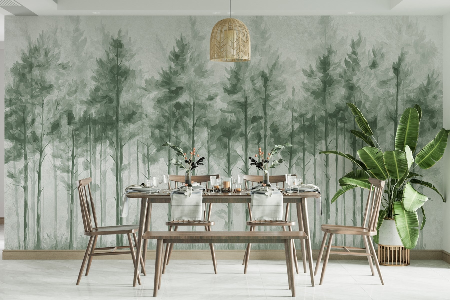 Przekształć zwykłą ścianę w spokojną ucieczkę dzięki tej fototapecie “Grupa drzew w lesie”. Wyobraź sobie, że wkraczasz do łagodnego lasu, gdzie miękka zieleń i delikatna mgiełka zachęcają do wzięcia głębokiego oddechu i odprężenia. To jak przeniesienie kawałka natury do domu – bez robaków, bez zabłoconych butów! Idealna do przytulnego kącika w salonie lub uspokajającej sypialni, ta fototapeta szepcze spokój. Wyobraź sobie popijanie kawy, wpatrując się w te drzewa, pozwalając umysłowi wędrować po spokojnych leśnych szlakach. Odrobina natury może zdziałać cuda dla duszy!