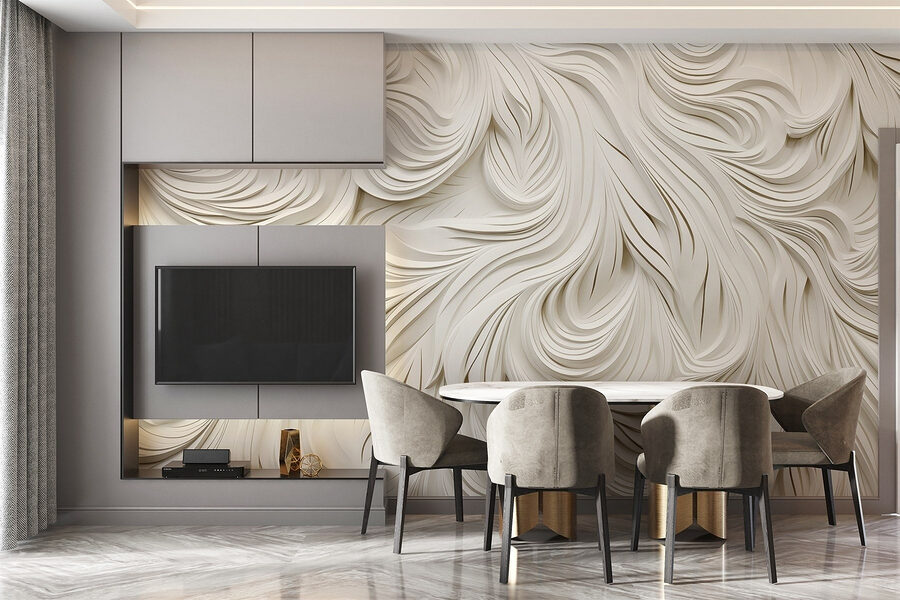 Przekształć każdy pokój w senną ucieczkę dzięki tej urzekającej fototapecie ściennej. Dzięki skomplikowanym falistym liniom, które wydają się płynąć jak delikatne fale, wnosi ona poczucie ruchu i spokoju do twojej przestrzeni. Wyobraź sobie: wchodzisz do swojego pokoju i zamiast zwykłych nijakich ścian, witają cię miękkie, rzeźbiarskie wzory, które natychmiast uspokajają umysł. To jak przytulny uścisk dla twoich ścian. Ta fototapeta może inspirować kreatywność w pracy lub po prostu być idealnym tłem dla spokojnego wieczoru w domu. Idealna dla tych, którzy pragną odrobiny wyjątkowości!
