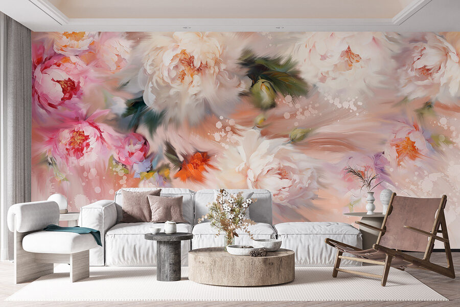 Odmień każdą przestrzeń dzięki tej oszałamiającej fototapecie ściennej z bujnymi kwiatami tańczącymi na delikatnym różowym tle. To jak przeniesienie ogrodu do wnętrza – bez uciążliwych pyłków! Wyobraź sobie wylegiwanie się w pokoju, w którym piwonie i róże zdają się szeptać sekrety wiosny. Delikatne pociągnięcia pędzla są niemal jak żywe, tworząc ciepłą, zachęcającą atmosferę, która zamienia grafikę ścienną w początek rozmowy. Idealny do przytulnego kącika do czytania lub ściany, która błaga o trochę miłości. To rodzaj dzieła, które sprawia, że uśmiechasz się za każdym razem, gdy przechodzisz obok. Przygotuj się na omdlenie!