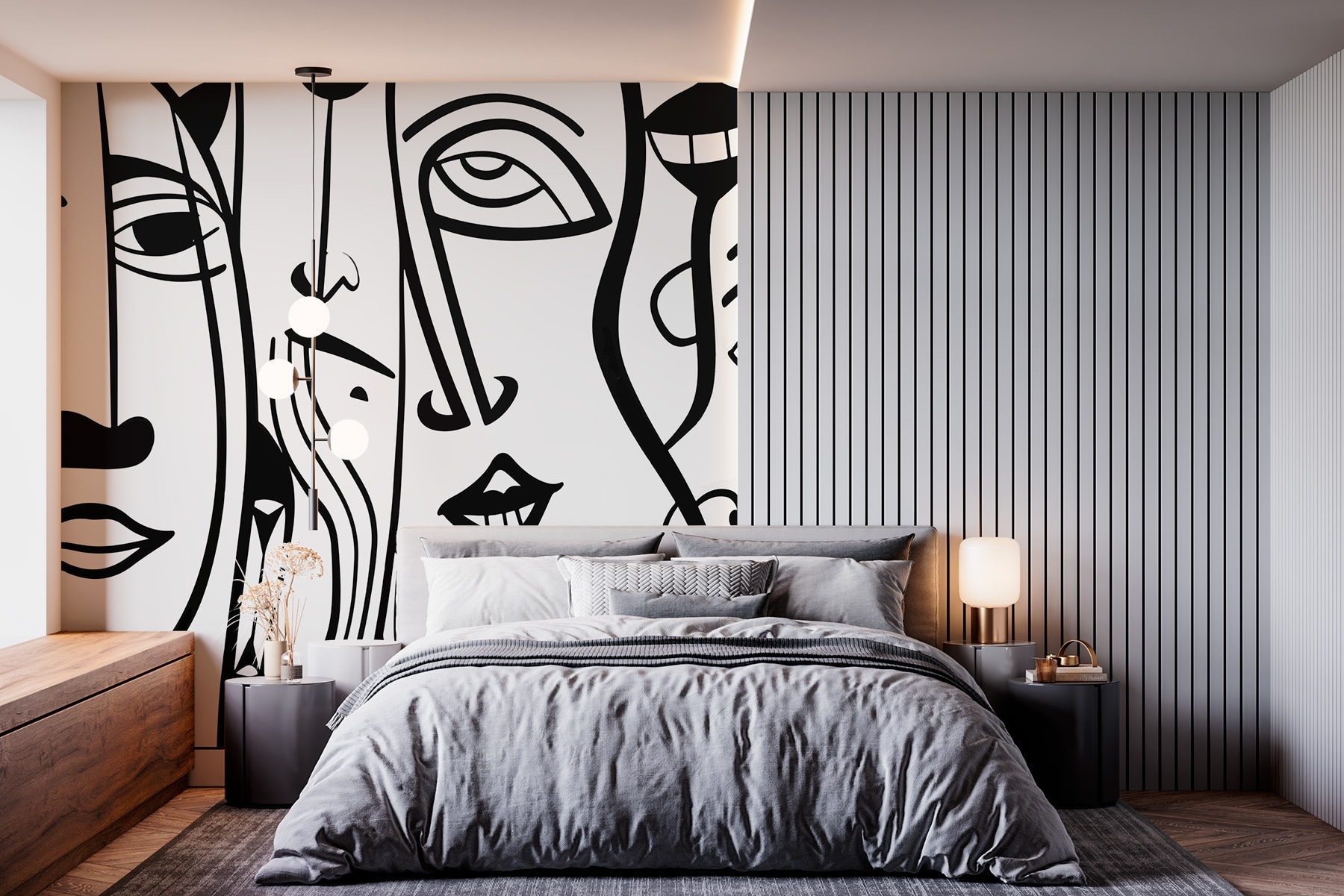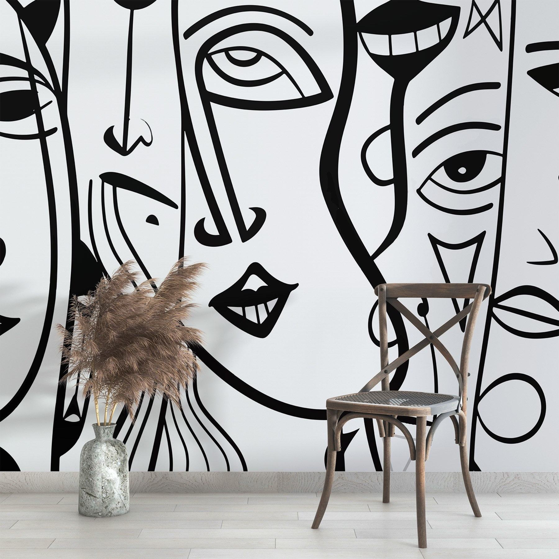 Odmień swoją przestrzeń dzięki tej urzekającej czarno-białej fototapecie ściennej z mieszanką wyrazistych twarzy. To jak posiadanie galerii sztuki bezpośrednio w salonie, ale bez pretensjonalnego klimatu. Odważne linie i zabawne kształty zachęcają do rozmowy – wyobraź sobie, że przyjaciele zatrzymują się w połowie zdania, aby podziwiać ten obraz, próbując jednocześnie rozszyfrować emocje zamrożone w tych dziwacznych wyrazach twarzy.