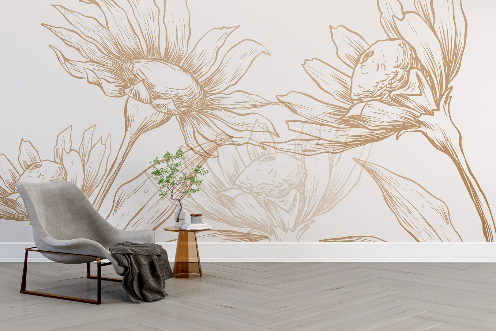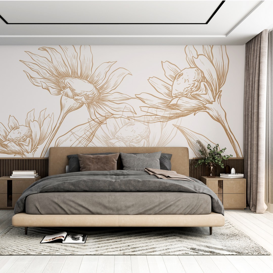 Odmień każdą przestrzeń dzięki tej czarującej fototapecie ściennej z oszałamiającym rysunkiem kwiatów i liści. Wyobraź sobie, że każdego dnia budzisz się w łagodnym uścisku natury – to tak, jakbyś wniósł spokojny ogród do środka! Delikatne detale i miękkie linie opowiadają piękną historię bez słów, tworząc uspokajającą atmosferę, która otula jak ciepły uścisk. Idealny do przytulnego salonu lub spokojnej sypialni, wywołuje radość i dodaje artystycznego charakteru. Wystarczy wyobrazić sobie popijanie porannej kawy w otoczeniu tego kwiatowego uroku. Kto by pomyślał, że dekoracja ścienna może być tak orzeźwiająca?