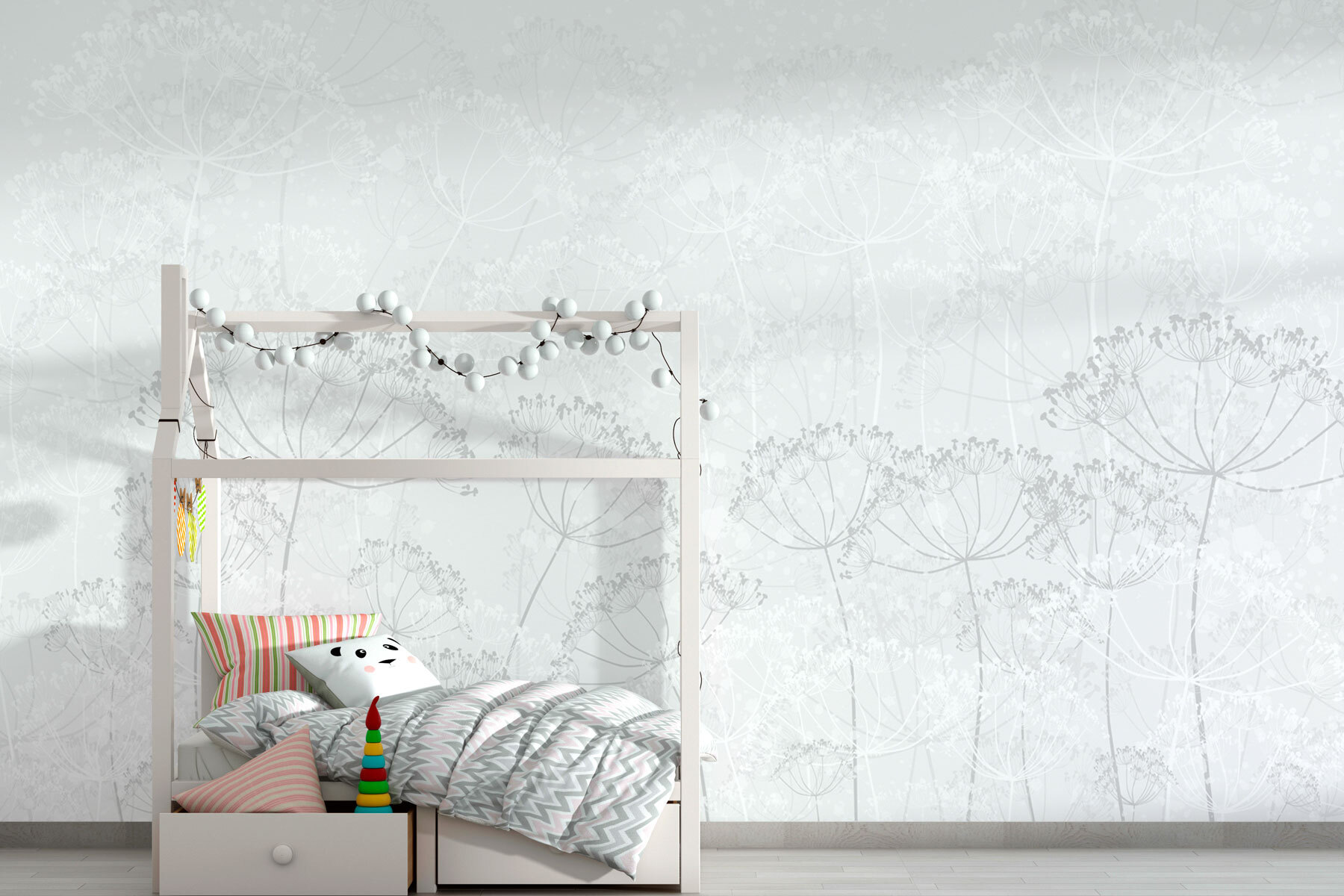 Odmień swoją przestrzeń dzięki tej czarującej fototapecie ściennej “Białe tło z kwiatami”. Wyobraź sobie, że wchodzisz do spokojnego ogrodu, w którym delikatne kwiaty szepczą spokój. Miękkie akwarelowe odcienie bieli i szarości tworzą uspokajające tło, idealne do przytulnego kącika do czytania lub rozjaśnienia mniej inspirującego korytarza.