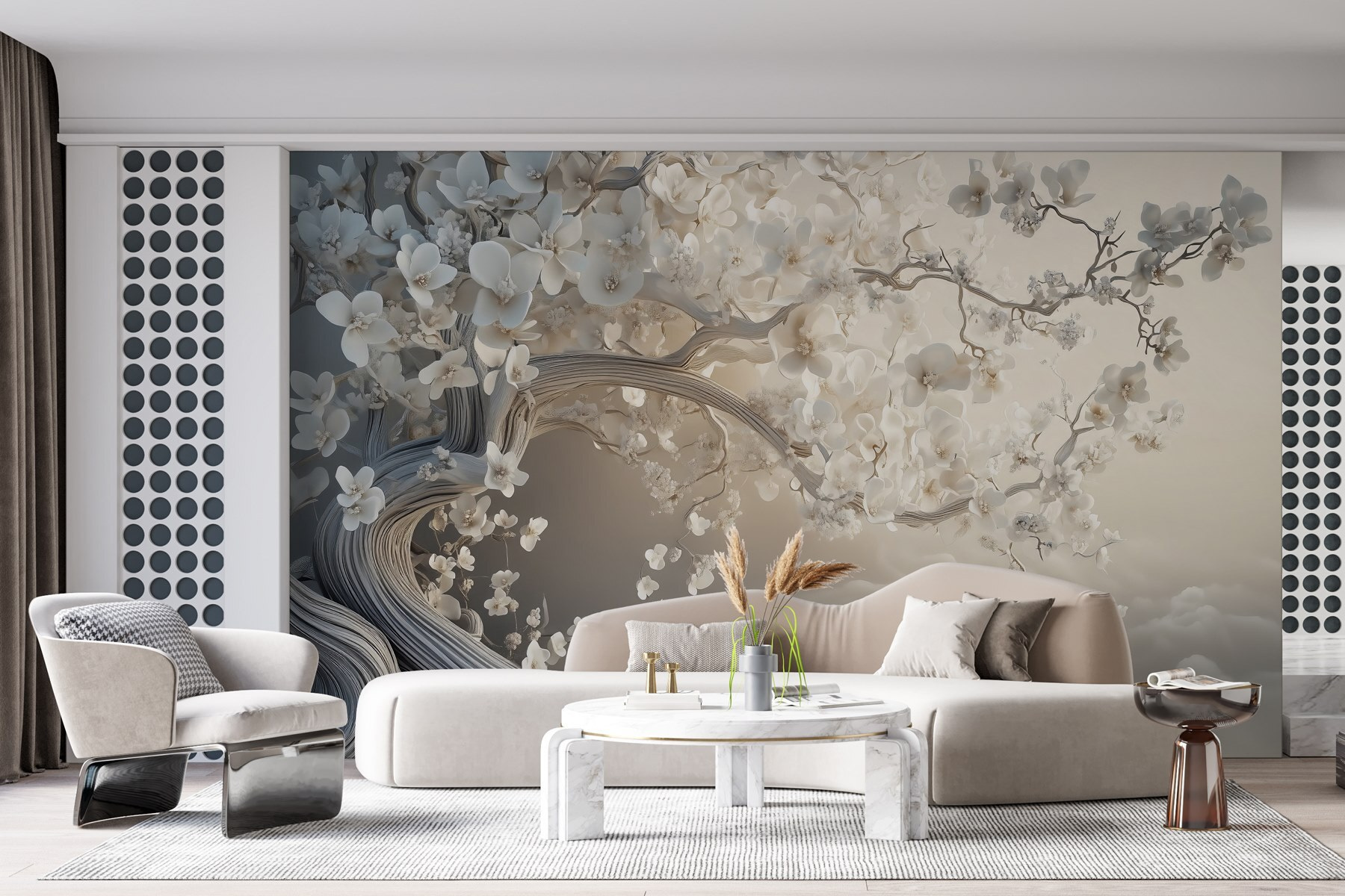 Odmień każdą przestrzeń dzięki oszałamiającej fototapecie “Białe drzewo z białymi kwiatami”. Wyobraź sobie, że wkraczasz do spokojnego japońskiego ogrodu, w którym panuje pokojowa atmosfera, niczym ciepła filiżanka herbaty w rześki poranek. Misterny projekt tej fototapety zaprasza delikatne szepty natury do wnętrza, łącząc piękno ze spokojem. Wdzięczne gałęzie delikatnie się wyginają, ozdobione delikatnymi kwiatami, które wydają się tańczyć na wietrze. Idealny do salonów lub przytulnych zakątków, to jak senna ucieczka bezpośrednio na ścianie. Pomyśl tylko – każde spojrzenie może dodać odrobinę zen do twojego dnia. Dodaj ten dotyk natury i obserwuj, jak zwyczajność staje się kapryśną krainą czarów.