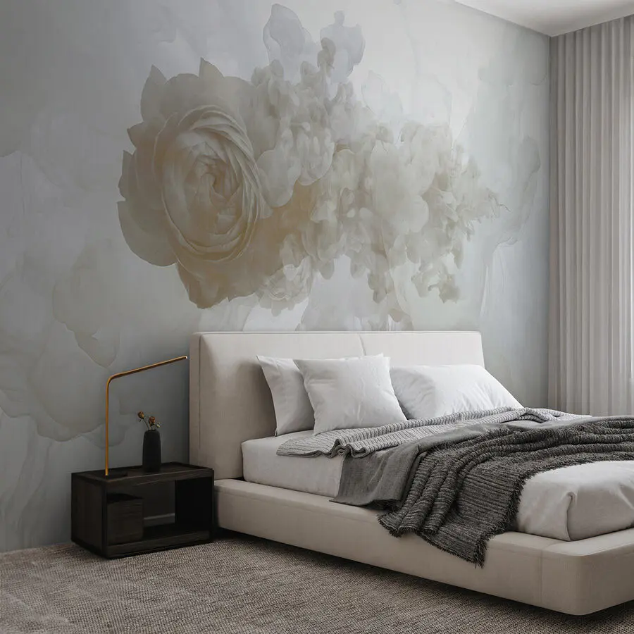 Idealna do przytulnego kącika do czytania lub minimalistycznego salonu, zachęca do wyciszenia i spokoju. Wyobraź sobie, jak zwijasz się z filiżanką herbaty, otoczony tym delikatnym pięknem. Kto nie poczułby ciepłego blasku? Subtelne odcienie wywołują uczucie spokoju, a abstrakcyjny kwiat dodaje tylko odrobinę intrygi – jak szepty natury uchwycone w sztuce. Ta fototapeta może sprawić, że każda ściana ożyje, wprowadzając kawałek natury do wnętrza.