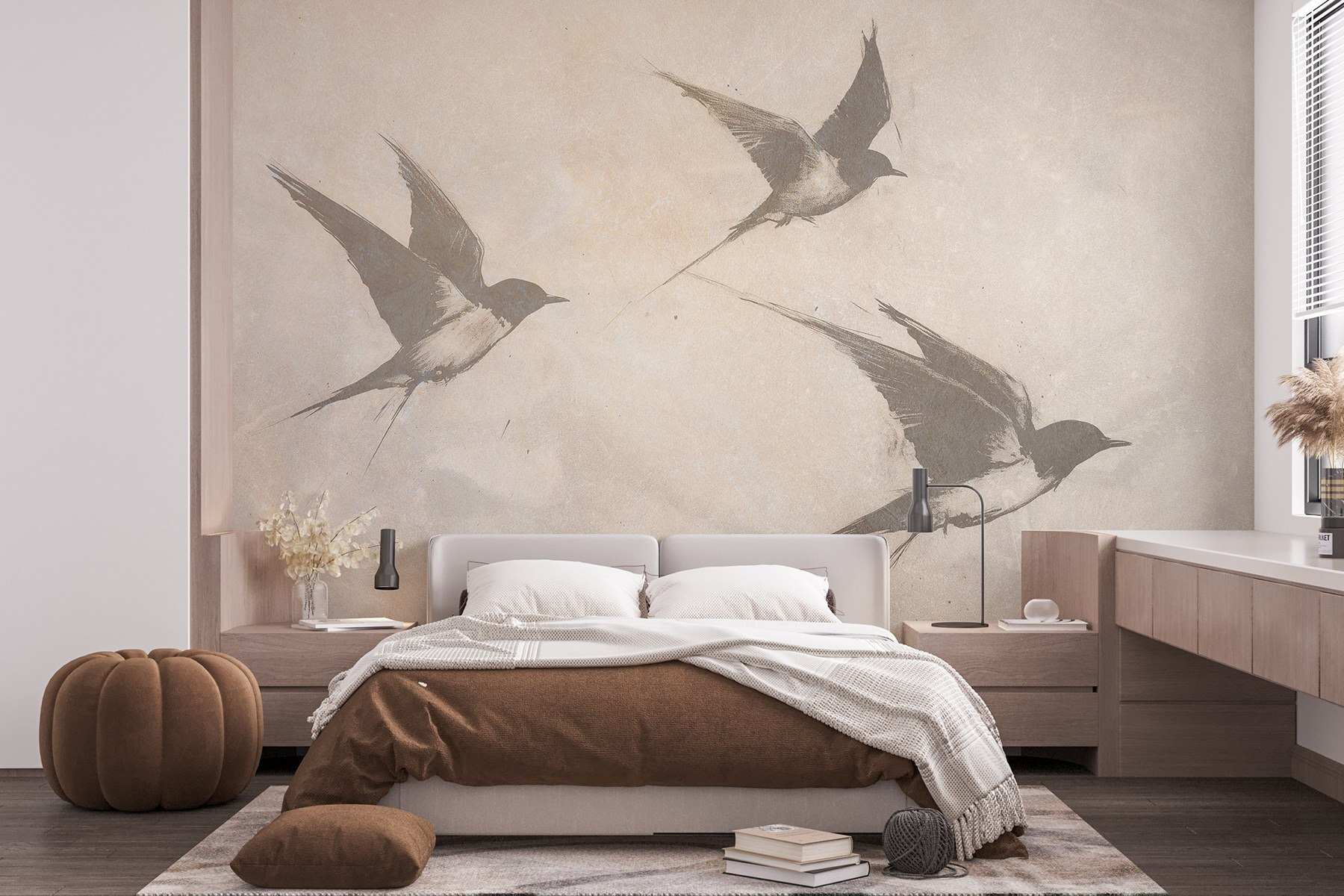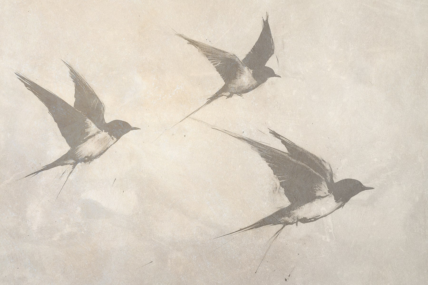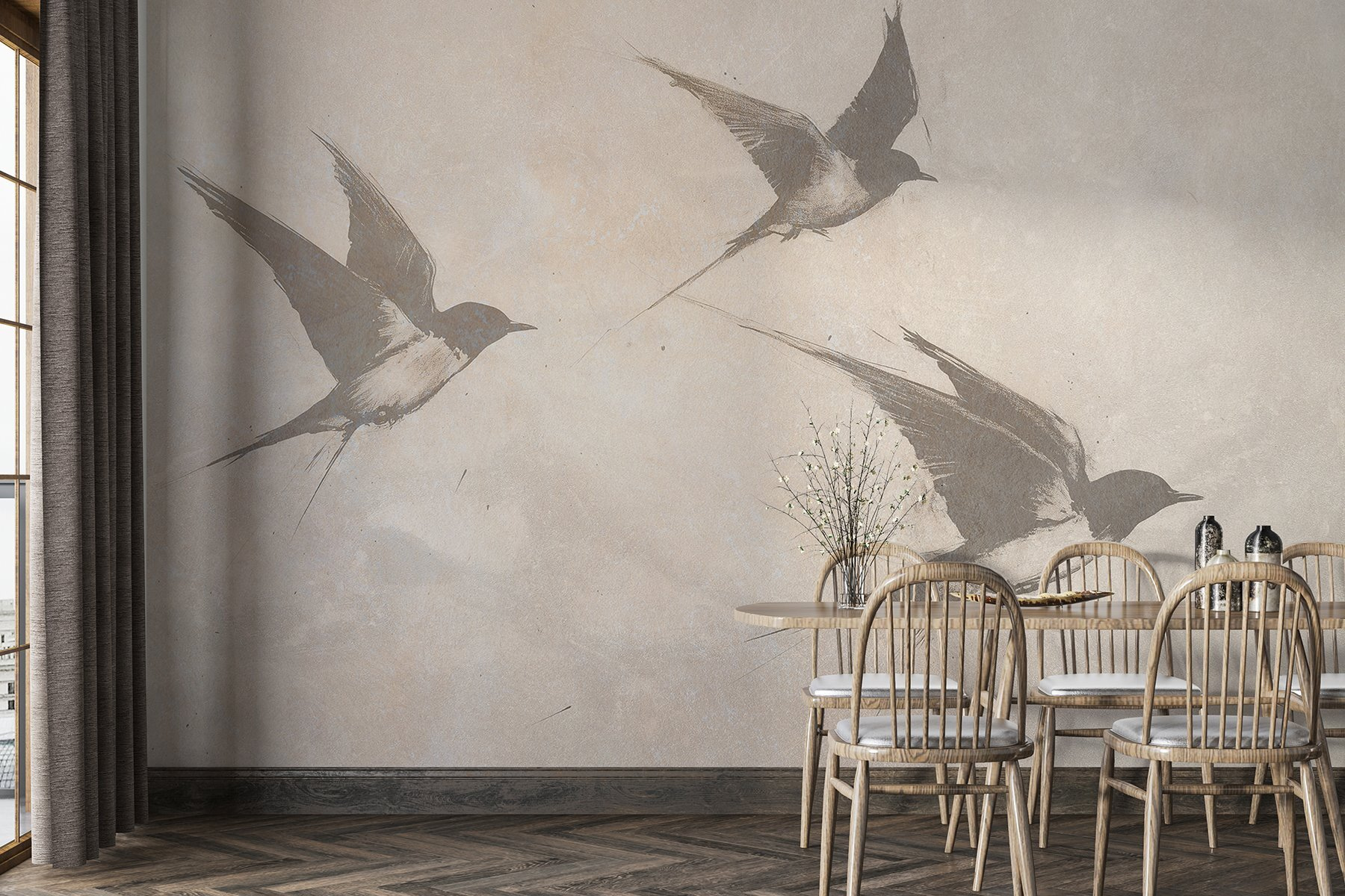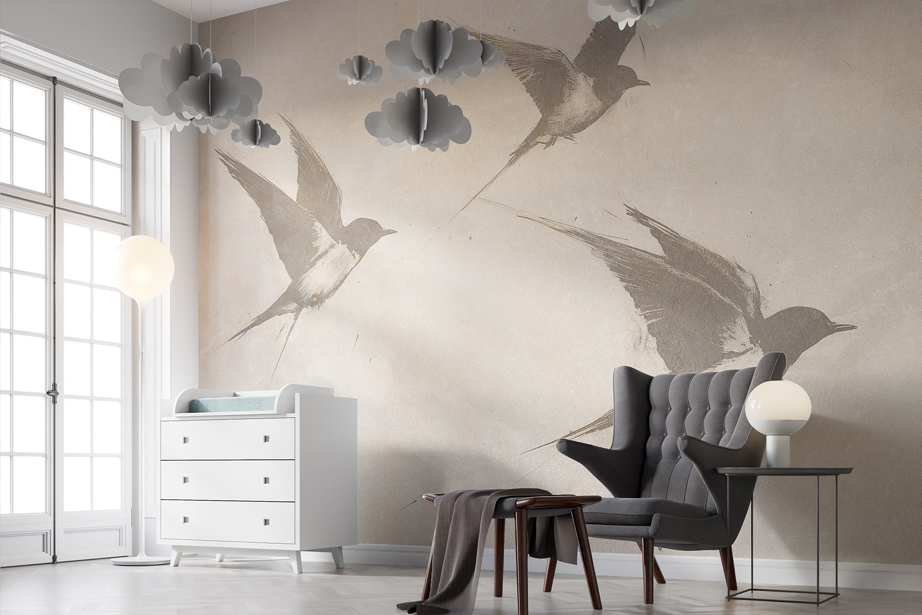 Przekształć dowolną przestrzeń w spokojną ucieczkę dzięki tej oszałamiającej fototapecie przedstawiającej ptaki szybujące w przestworzach. Miękkie kolory i delikatne linie tworzą uspokajającą atmosferę, idealną do salonu lub przytulnego kącika do czytania. Wyobraź sobie, że zwijasz się w kłębek z dobrą książką, a delikatne szepty wyimaginowanych skrzydeł kierują twoimi myślami. To tak, jakby mieć kawałek natury bezpośrednio na ścianie, zapraszając spokój i poczucie wolności. Niezależnie od tego, czy pobudza marzenia o odległych miejscach, czy po prostu wywołuje uśmiech na twarzy, ta fototapeta jest wspaniałym dodatkiem. Kto nie chciałby mieć kilku pierzastych przyjaciół spędzających z nim cały dzień?
