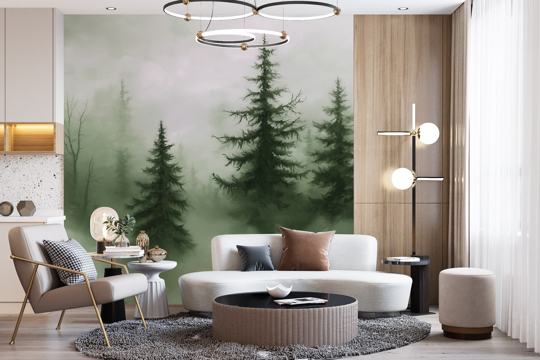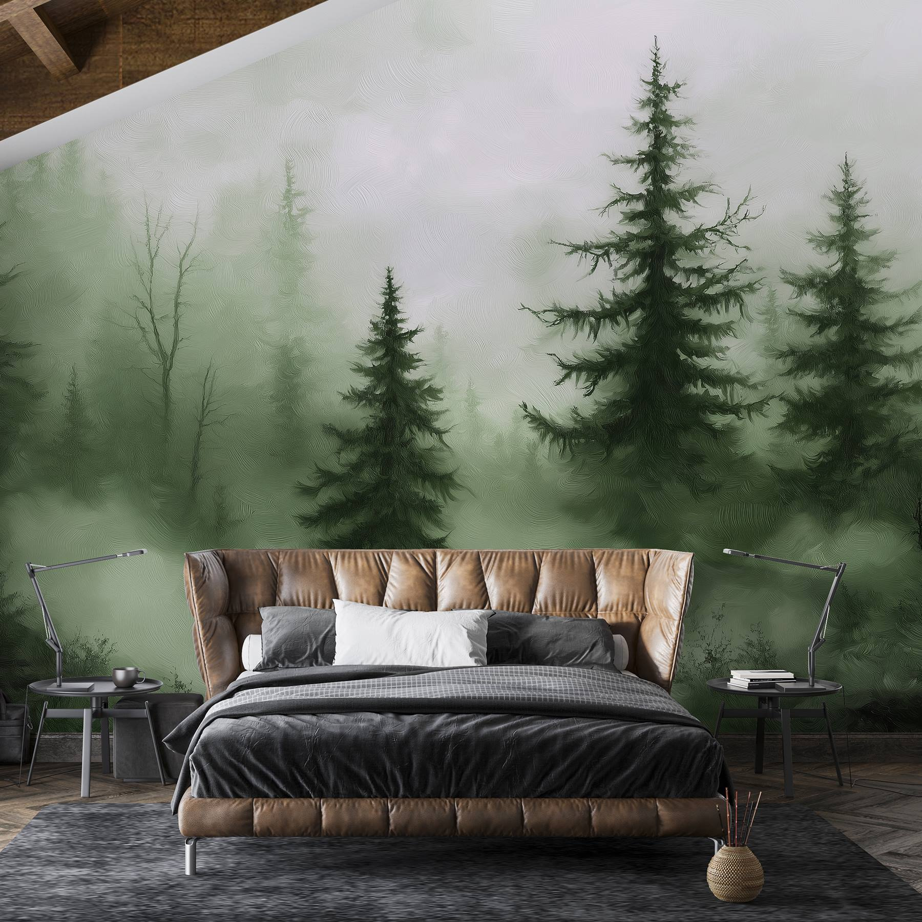 Wkrocz w senną ucieczkę z fototapetą “Mglisty las z drzewami”. Wyobraź sobie, że popijasz poranną kawę w otoczeniu spokojnego, mglistego lasu, w którym wysokie drzewa zdają się szeptać tajemnice. Ten wzór wnosi kawałek natury do twojego domu – idealny do stworzenia przytulnego kącika lub spokojnego odosobnienia. Stonowana zieleń i miękkie tekstury zachęcają do wyciszenia, prawie jak uścisk Matki Natury. Dodatkowo, nie ma potrzeby noszenia butów turystycznych ani sprayu na owady! Po prostu usiądź wygodnie, zrelaksuj się i pozwól swoim ścianom mówić.