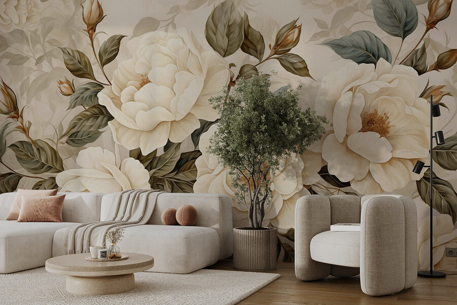 Przekształcenie pokoju w przytulną oazę to pestka dzięki kolekcji “Delicate Blooms in Soft Tones”. Wyobraź sobie, że wkraczasz do przestrzeni, w której kremowe piwonie bez wysiłku rozkwitają na ścianach, otulając Cię miękkimi odcieniami, które są niemal senne. To jak posiadanie własnego ogrodu, bez uciążliwych pszczół. Idealny na te dni, kiedy chcesz po prostu popijać herbatę, zwinąć się w kłębek z dobrą książką lub oddać się marzeniom o wiosennych piknikach.